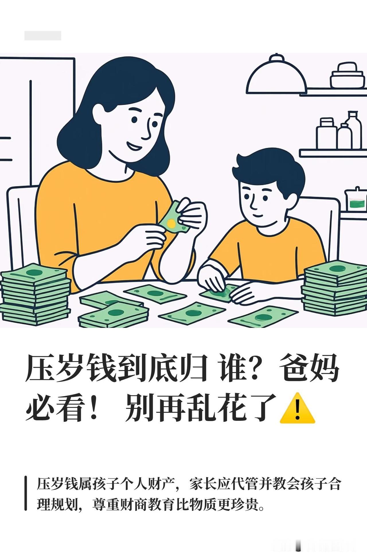 压岁钱在法律上属于孩子所有。长辈给孩子压岁钱在法律上属于“赠与”行为,一旦孩子接受,这笔钱的所有权就转移给了孩子。由于孩子年龄不同,支配和管理的权利会有所区别。 不满八岁,属于无民事行为能力人,压岁钱应由父母代为保管和支配。已满8周岁但不满18周岁,属于限制民事行为能力人,可以自己保管小额压岁钱,进行与其年龄、智力相适应的消费(如买文具、玩具)。但对于大额支出(如大额游戏充值、购买贵重物品),则需要父母的同意或追认,已满18周岁,已是完全民事行为能力人,可以独立支配和管理自己的压岁钱,父母无权干涉。 作为孩子的法定监护人,父母对孩子的压岁钱拥有保管权,但没有随意的使用权。 帮助孩子存入银行、用于孩子的教育、医疗、购买生活学习用品等,一切出发点必须是为了孩子的利益。 不可以这样做,将孩子的压岁钱据为己有,用于个人消费、还债、投资或任何与孩子利益无关的用途。如果这样做,就侵犯了孩子的财产权。有真实案例显示,父亲擅自挪用孩子的8万余元压岁钱用于再婚开销,最终被法院判决全额返还。 很多父母会觉得我给别人家孩子发了红包,人家才给我家孩子发,这钱本来就是我的。这是一个误解。法律上,这是两个独立的赠与行为。亲戚给孩子的压岁钱,所有权就归孩子;而父母给亲戚孩子的压岁钱,是另一个赠与行为,两者不能抵消。 压岁钱是长辈给孩子的祝福,所有权属于孩子。父母作为监护人,有责任帮助孩子妥善保管和合理使用这笔钱,这既是法律的要求,也是培养孩子正确金钱观的好机会。