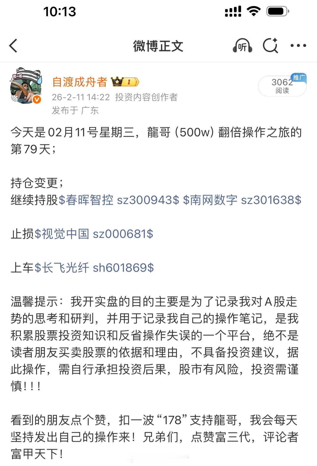 年前11号上车$长飞光纤 sh601869$ 目前迎来涨停板新高,开门红