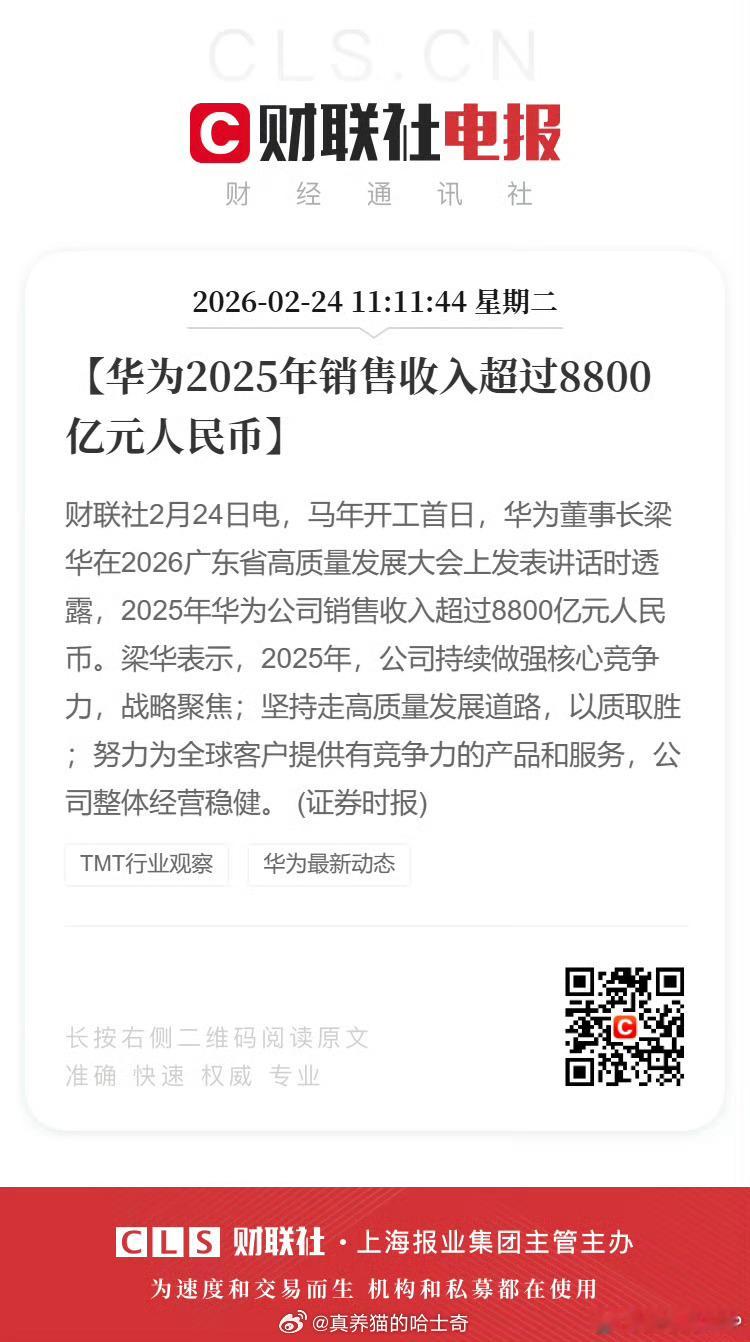 华为2025年销售收入超8800亿 这是历史第二高的收入,仅次于2020年的8914亿。华为手机在2020年2季度全球销量第一,这些年的收入下滑主要是因为芯片和GMS被制裁。目前来看,华为手机在今年出货量还会大幅增长,华为的收入也会再创新高。目前鸿蒙终端的销量已经突破4600万,估计今年有可能破亿。