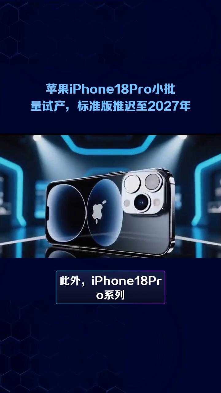 苹果iPhone18Pro小批量试产,标准版推迟至2027年。 苹果新一代iPhone18Pro已启动小批量试产,但标准版iPhone18却面临推迟至2027年发布的困境。2月24日,苹果公司宣布新一代高端旗舰iPhone18Pro已进入小批量试产阶段,为下半年大规模量产做准备。 此次试产采用台积电2nm工艺的A20Pro芯片,性能提升15%,功耗降低30%,同时引入WMCM封装技术,进一步缩短数据传输路径。然而由于2nm产能紧张,标准版iPhone18的发布日期被迫推迟至2027年春季。苹果此举意在延长不同定位产品的市场热度周期,避免用户对新品更新换代的失望情绪。 此外,iPhone18Pro系列还首次引入可变光圈技术,以及更小的灵动岛设计,提升了屏占比和视觉沉浸感。尽管如此,关于新机型是否能彻底摆脱高通基带的质疑声依然存在,用户对苹果新品的期待与担忧并存。