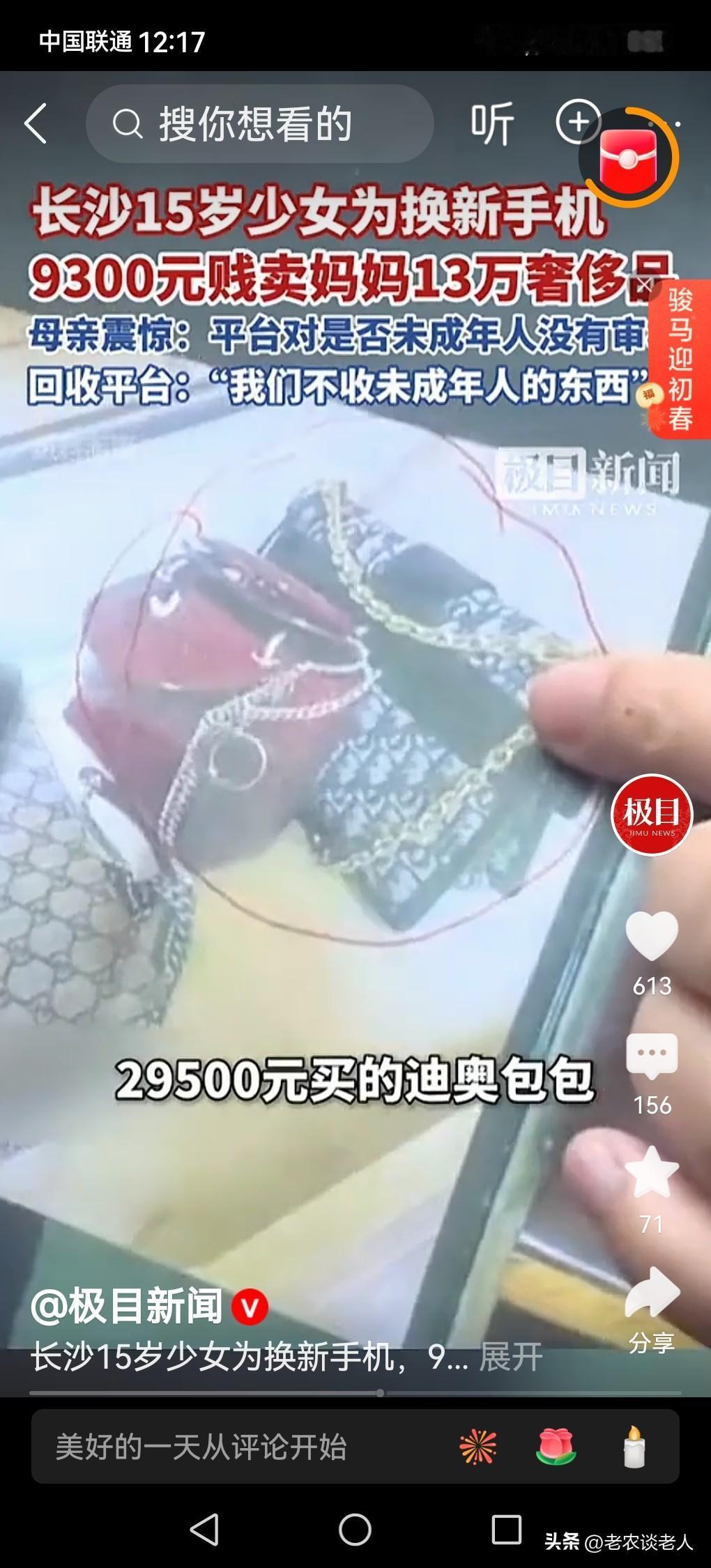 女孩为换手机9300元,贱卖妈妈13万奢侈品! 据媒体2月23日报道,湖南长沙15岁少女为换新手机需要9600元,分6次将家中妈妈的奢侈品,总价值约13万元贱卖,仅换得9300元,包括卡地亚手表46200元购入,卖价2000元,迪奥包包29500元购入,卖价1500元,浪琴手表12500元购入,卖价850元。家长:震惊愤怒,质疑二手奢侈品回收商家未审核卖家是否为未成年人,存在审核漏洞。回收商家:我们不收未成年人的东西。 通过此事例,回到我们的日常生活中来,本人认为,15岁的孩子,纯属于限制民事行为能力人,是法定的未成年人,出售贵重物品,是需要监护人认可同意,若是监护人拒绝追认的时候,该交易是无效的。因此,专业回收商家,未经核实监护人同意,是存在过错的,该交易在法理上是无效的。 本人认为,此事件存在三个方面的错误: ①女孩监护人应该反思家庭教育存在不足之处。对该女孩存在家庭教育缺失,家庭教育不严谨,对孩子的家庭教育有放任不管的倾向。 ②二手奢侈品回收商家应该承担相应失职责任。明知这些奢侈品价格昂贵,利用未成年人的弱点和痛点,欺压该女孩,赚取“黑心钱”,牟取暴利,应该退还该女孩的妈妈的所收昂贵的奢侈品,该交易是无效的。 ③应该监护人对该女孩进行有的放矢有目的的批评教育,使孩子懂得不能随意变卖家里的奢侈品等家产的原因,懂得勤俭节约的道理,让孩子懂得这些家产都是父母的血汗钱换来的,使孩子改邪归正,再不犯同类的错误。