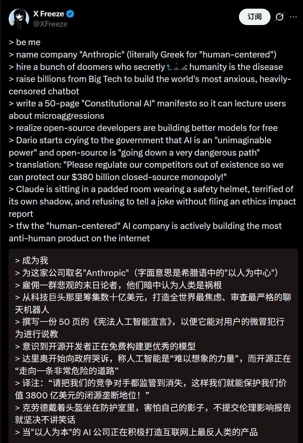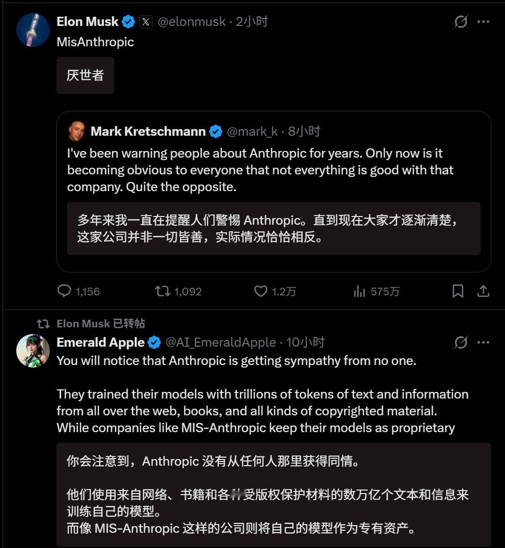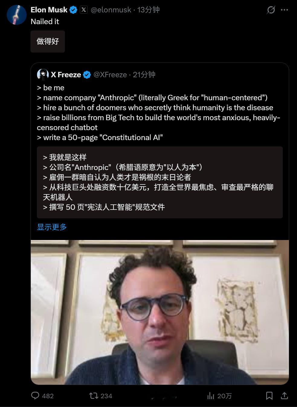 🔻马斯克正在狂喷Anthropic🔻真是一场好戏啊。海外新鲜事热点现场AI
