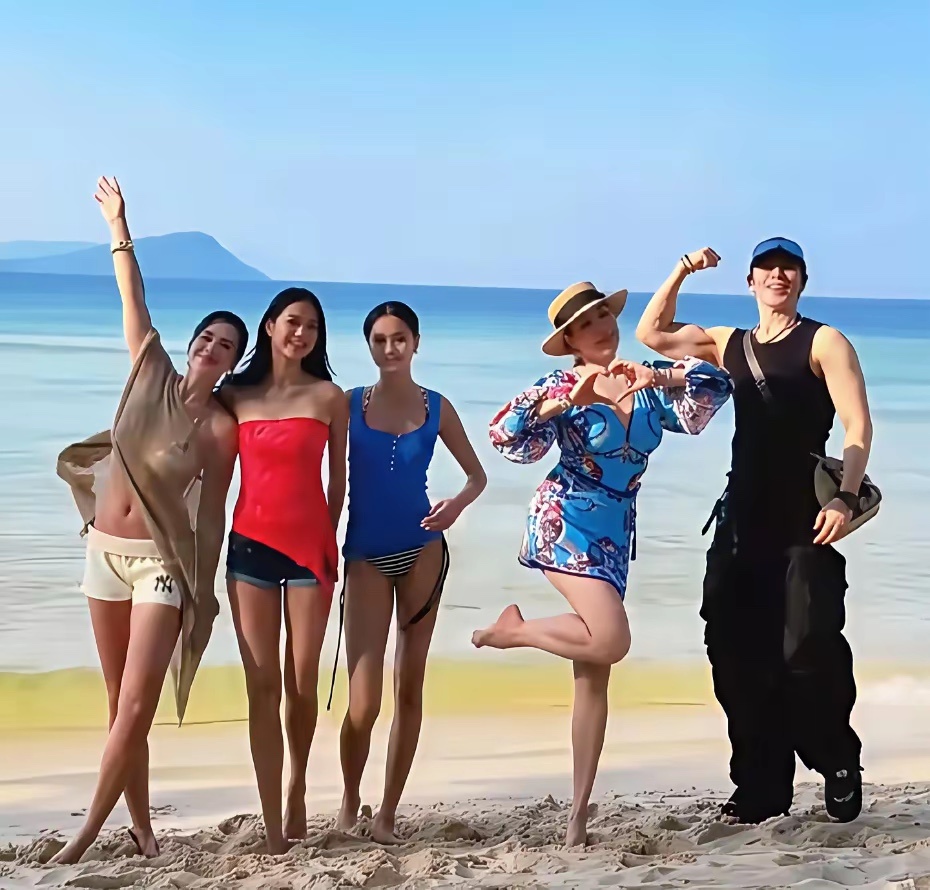 钟丽缇晒全家海边照片,三个女儿身材太好了!Cayla和Jaden的身材居然比大姐