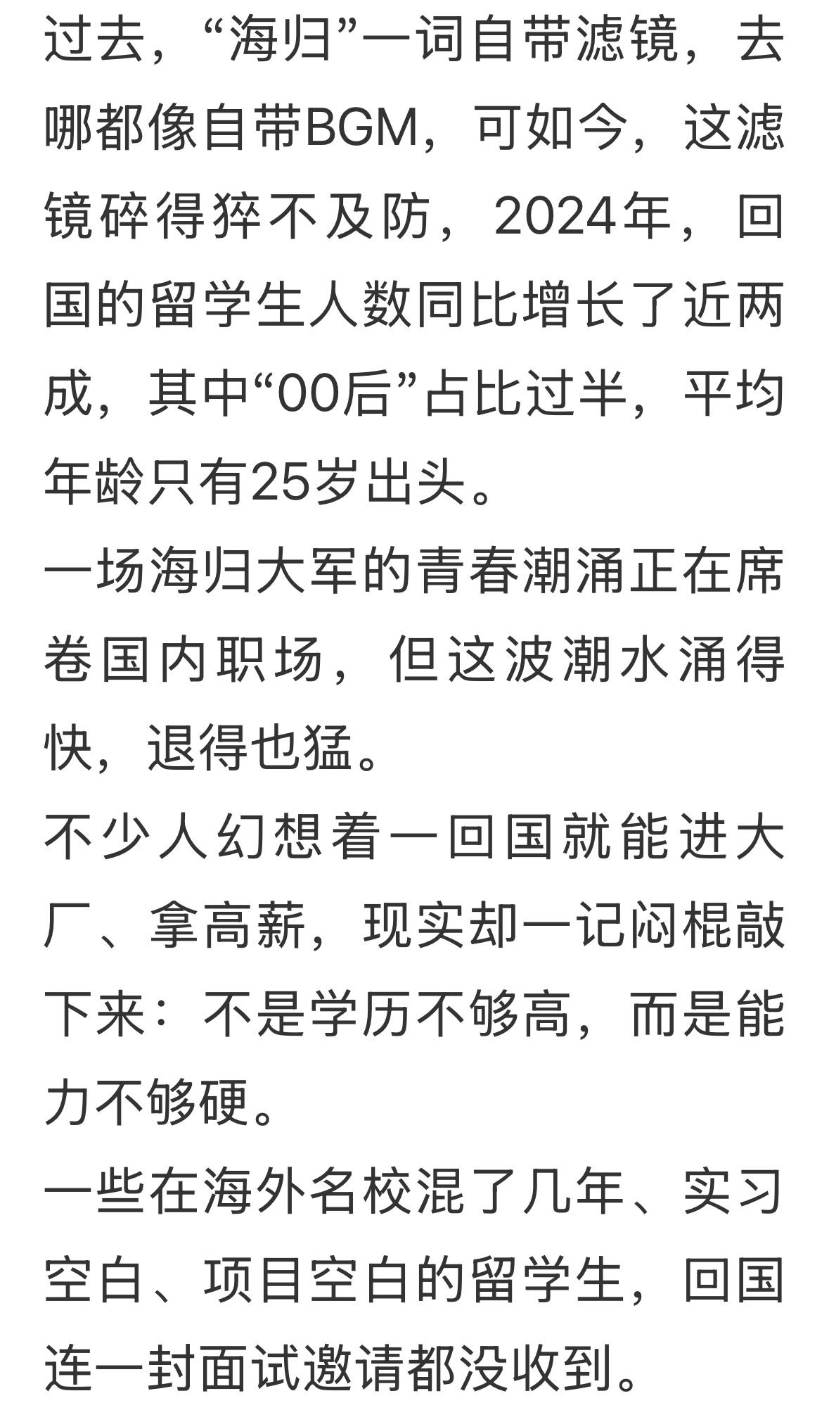 现在没有什么自身就带的光环了,全靠自己的能力和本事,出国留学相对来说,还是有很多优势和更多一点的机会,这个也不能否认。