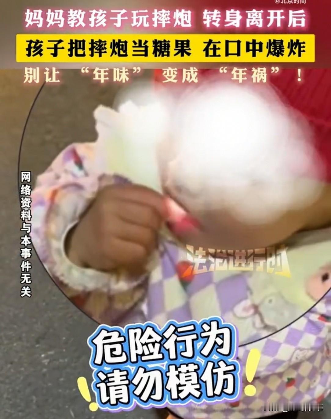 广东街头,妈妈带着孩子玩摔炮,中途转身走开。孩子看这花花绿绿,以为是糖果,直接塞进嘴里。下一秒,摔炮在嘴里炸了。 2月21日,正值春节热闹时期,广东一位宝妈带着年幼的孩子在家门口玩耍。 为了让孩子感受年味,她特意买了一盒色彩鲜艳的小摔炮,想着安全又好玩,便陪着孩子一起体验新年乐趣。 一开始,宝妈耐心地给孩子示范,教孩子把摔炮轻轻摔在地上,听清脆的响声。孩子觉得新奇有趣,笑得格外开心,宝妈也放下心来,手把手带着孩子玩了好一会儿。 就在这时,一通电话突然响起。宝妈一时大意,叮嘱孩子乖乖在原地玩耍,自己便转身进屋接听电话,短短几分钟的疏忽,却酿成了一场惊险意外。 年幼的孩子哪里懂得危险,看着地上红红绿绿、小巧圆润的摔炮,只觉得外形像极了平时吃的糖果。孩子毫无防备,随手抓起几颗,直接塞进嘴里啃咬。 只听“砰”的一声,摔炮在口腔里瞬间爆炸,火光一闪,孩子当场被剧烈的疼痛吓得大哭起来。 哭声惊动了屋内的宝妈,她冲出来一看,孩子嘴巴受伤,舌头也被炸裂,顿时吓得脸色惨白,心疼又自责。 她立刻上前查看孩子伤势,一边安抚受惊的孩子,一边满心懊悔。万幸的是,摔炮威力不大,孩子只是口腔和舌头受了外伤,没有造成更严重的后果。 这场意外也给所有家长敲响警钟:春节期间烟花爆竹虽能增添年味,但对低龄儿童来说暗藏巨大危险。千万不要让孩子单独接触这类物品,一时的疏忽,可能带来无法挽回的伤害。