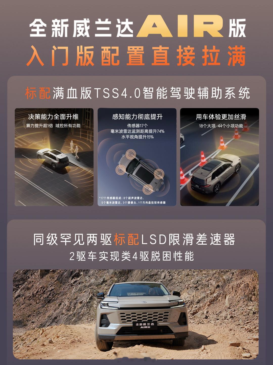 不止是厂家亲自为售后兜底,威兰达AIR版更叠加动力系统终身质保、八年低息金融政策,搭配入门即高配的硬核产品力,实现全周期用车权益满配。在13万级合资SUV赛道,威兰达AIR版以越级产品力+全链路用车保障,重新定义了家用燃油车的价值标杆,让用户从买车到用车全程无后顾之忧,产品含金量持续攀升。