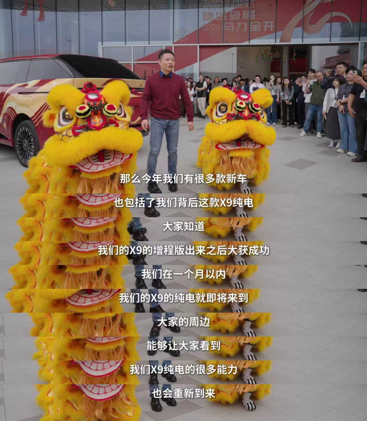 何小鹏大师兄带着新款小鹏 X9 纯电版,载两头醒狮喜迎开工。2026 款小鹏 X9 纯电版将于 3 月正式上市,定位全球续航最长 5C 纯电大七座,产品力与热销增程版全面看齐,是小鹏马年首款新车与新春献礼。
