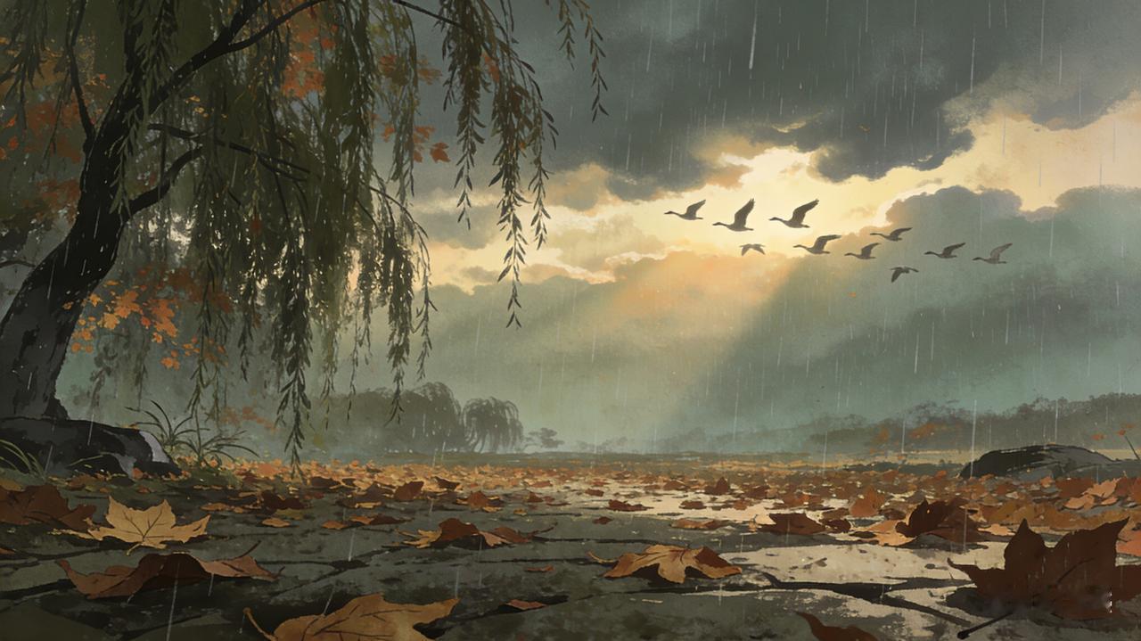 上联「秋雨无心敲落叶」,落笔清冷又温柔。秋雨本无意,却轻轻叩响枝头残叶,道尽自然的从容与洒脱,藏着一份不扰不惊的禅意。 下联以「晚风有韵送归鸿」相对,秋夜之风自带韵律,目送远飞的鸿雁,意境开阔又含淡淡相思。一雨一叶,一风一鸿,上下对仗工整,动静相宜。 整副对联不写悲秋,只写秋的清寂与诗意,像一幅淡墨山水,让人在喧嚣中静下来,感受时节之美、文字之雅。