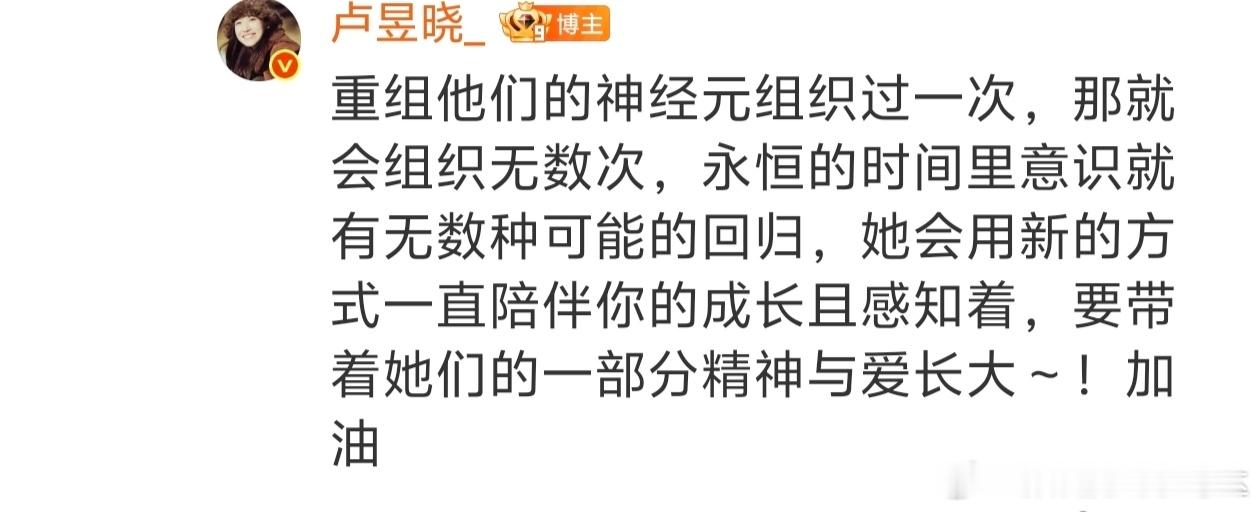 卢昱晓回复外婆去世的粉丝卢昱晓安慰粉丝的这段话可以说是文如其人了,温柔而有力量。