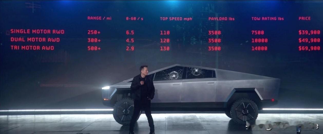 马斯克发文说: 新版cybertruck现在可以在美国订购 这是我们最便宜的Cybertruck。 坚固如钉子,拥有成本极低[捂脸] -起价59,990美元 -双马达全轮驱动车,续航里程325英里 -动力吨位盖 -床插座(2个120V + 1个240V)和电源共享功能 -带自适应阻尼的螺旋弹簧 -加热第一排座椅,采用易于清洁的纺织材料 -线控转向和四轮转向 -高达7,500磅的牵引能力 网友留言说比他早年前介绍的价格要贵多了,不知道是不是美国CPI太高了,汽车在美国造出来,就贵了!近6万美元(人民币40多万)的Cybertruck能像其他车车型那样好卖吗? 拭目以待吧!