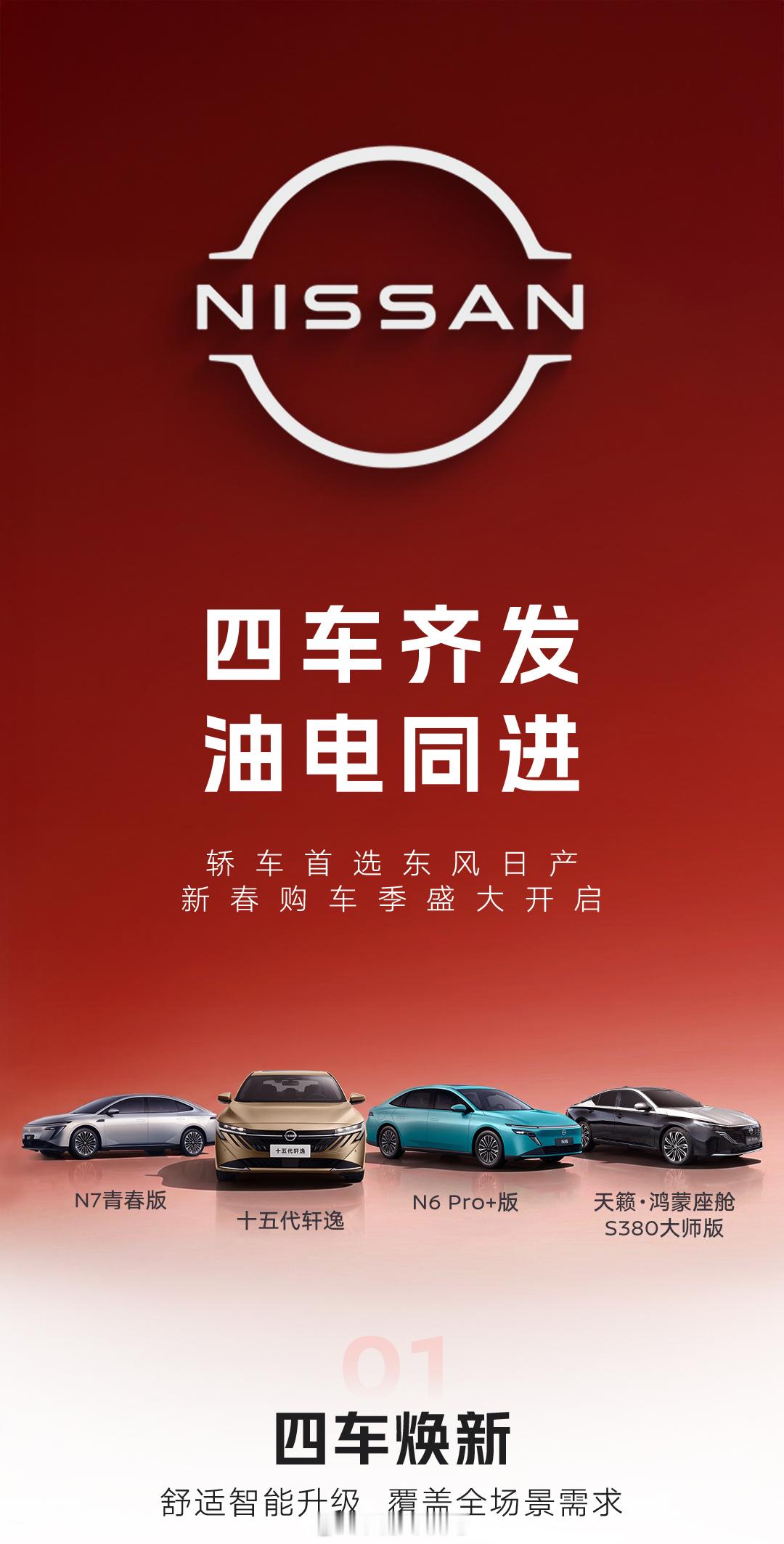 东风日产开年第一天,四车齐发“油电同进”。~ 十五代轩逸上市,标配高通8155芯片+双12.3英寸联屏,智能越级全面焕新9.49万起。