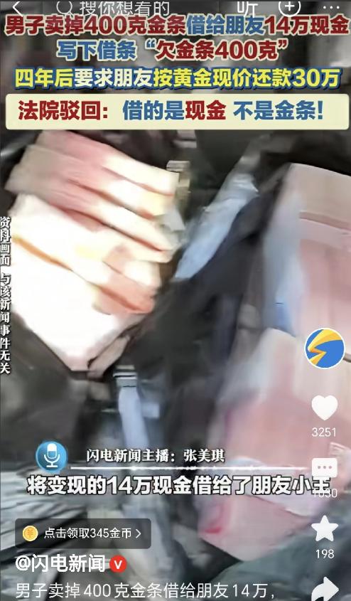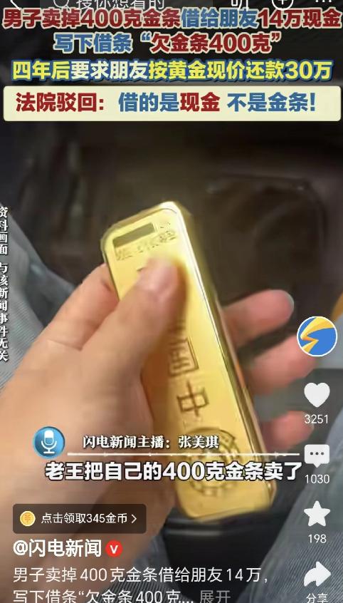 一根400克金条,几年时间翻倍涨到30万,结果却成了朋友反目的导火索。借钱时是情分,还钱时却上了法庭——这事,很多人都觉得“谁亏谁冤”,但法律只看一个核心:你当初到底借的是什么? 老王一直有收藏黄金的习惯。那根400克、纯度99.9%的金条,是他多年的积蓄。平时偶尔拿出来看看,在他心里,这不仅是资产,更是一份安全感。 后来朋友小王做生意周转困难,急需一笔资金。几番恳求之下,老王动了恻隐之心。可手头没有现成现金,他思来想去,决定把金条卖掉帮朋友。 两人一起去了金店。按当时市场价,400克黄金卖了14万元,钱直接打进老王账户。随后几天,老王分几次把这14万元转给小王。 为表诚意,小王写下一张借条:“今欠老王金条400g,纯度99.9%。” 当时双方都没有深究这句话的法律后果。 几年过去,黄金价格一路上涨。曾经卖出14万的那根金条,如今市场价值接近30万。老王越想越不是滋味:“要不是你借钱,我根本不会卖。现在一根变两根,这损失算谁的?” 他找到小王,提出按当前金价偿还。小王当场拒绝:“我借的是14万现金,不是金条。金条你自己卖的。” 争执无果,两人对簿公堂。庭审中,争议焦点很明确:借款标的是金条,还是14万元现金? 这不是简单的“借条怎么写就怎么还”,而是典型的民间借贷合同认定问题。 《民法典》第六百六十七条规定,借款合同是借款人向贷款人借款,到期返还借款的合同。第六百七十九条进一步明确,自然人之间的借款合同,自贷款人提供借款时成立。 关键在于“提供借款”这四个字。法律认定借贷关系,看的是实际交付。 本案中,老王并未把400克金条交给小王,而是先自行出售,再将14万元现金转账给对方。银行流水清晰显示,实际交付物为现金,而非实物黄金。 因此,法院认定双方之间成立的是14万元的现金借贷关系。金条只是资金来源,并非借款标的。 那么,借条写着“欠金条400g”是否具有决定性作用? 根据《民法典》第四百六十六条,合同条款存在歧义时,应结合履行行为、交易习惯等因素解释。若书面内容与实际履行明显不一致,应以真实履行情况为准。 换句话说,借条不是万能“翻盘神器”。它是证据之一,但不能脱离事实单独存在。 老王主张,若不是为了借钱,不会卖金条,因此涨价损失应由借款人承担。这个逻辑在情理上或许能理解,但在法律上站不住脚。 黄金涨跌属于市场风险。老王在出售时已完成资产处置,获得现金。此后价格上涨,是投资机会成本,而非借贷损失。若允许债权人事后按涨幅追加金额,那么一旦金价下跌,借款人是否可以要求减少还款?显然不符合合同稳定原则。 法院最终判决,小王按14万元本金承担还款责任,不支持按现价黄金折算30万元的请求。 这个案子,表面看是朋友之间的账算不清,实质上是三个法律误区的集中体现。 第一,借条内容必须与实际交付一致。收到现金,就写现金;交付实物,就写实物。混淆标的,等于给未来埋雷。 第二,投资风险不能事后转嫁。卖出资产那一刻,涨跌风险已经结束,不能因为市场上涨就要求“补差价”。 第三,民间借贷认定以实际交付为准。法院看的是资金流向和履行事实,而不是事后解释。 不少网友看完都说:“要是金价跌了,老王还会找朋友补钱吗?”这句话,其实就是法律的答案——合同不是押注未来行情的工具,而是确认当下交易的规则。 一根金条,从14万涨到30万,涨的是价格,变的是人心。法律给出的结论很冷静:你当初给出去的是什么,就只能按什么算。