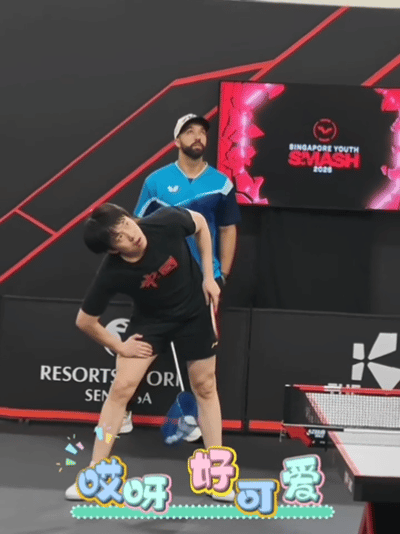 王楚钦很大一声“瞎啦”,真是狠起来连自己都骂。 但是训练时也是很可爱的。 2.24日,王楚钦在新加坡训练,有一个球没拉上,是自己失误,没看清球旋转,丢了, 然后听到他很大一声“瞎啦”,满脸的皱巴巴。 对自己确实挺狠。 图2-4,自己一使劲,球飞了,弯腰“让我看看球去哪里了” 也是超级可爱。 晚上,对战户上隼辅,这是一场非常难打的比赛,要做好困难准备, 王楚钦加油!