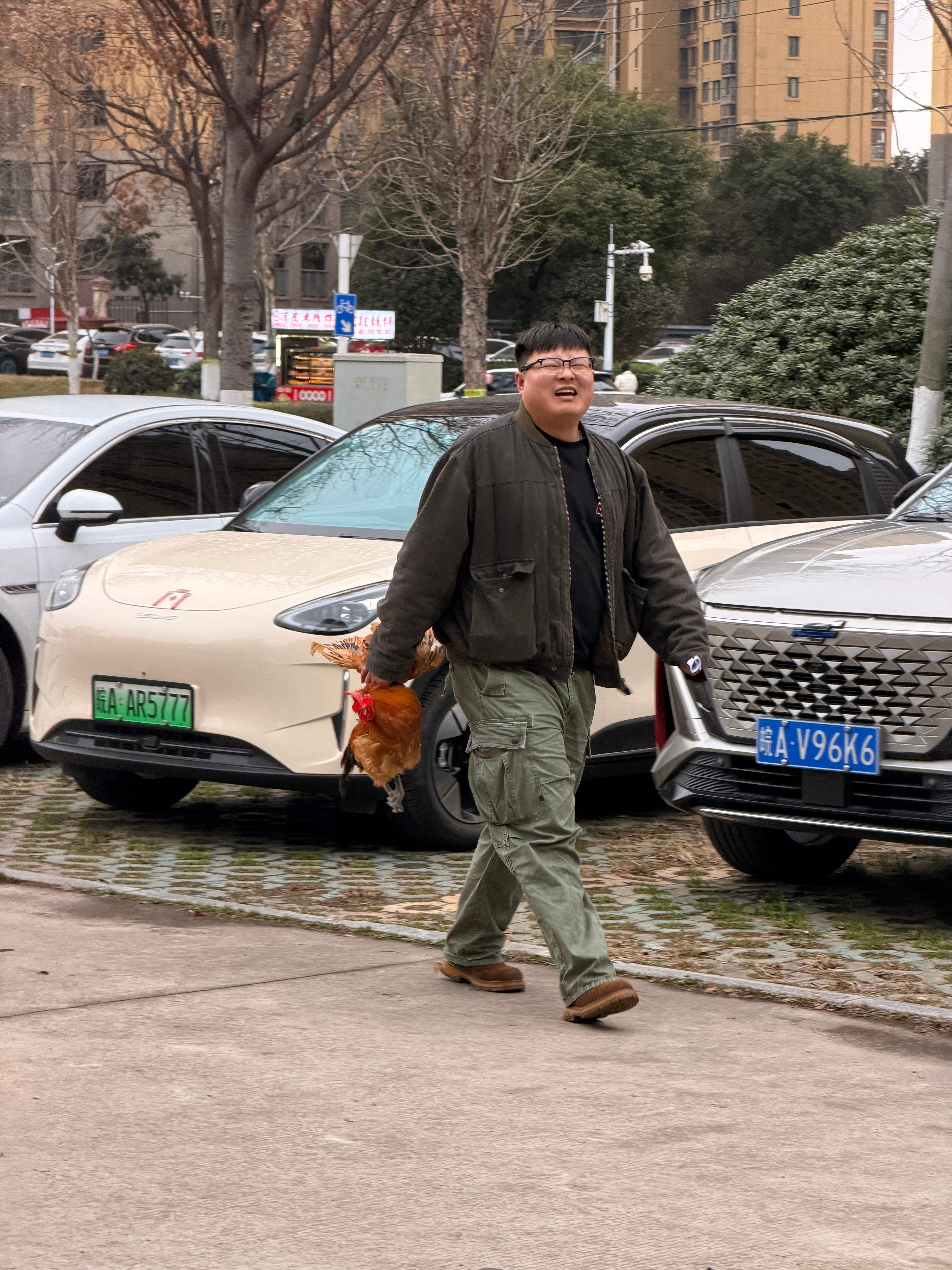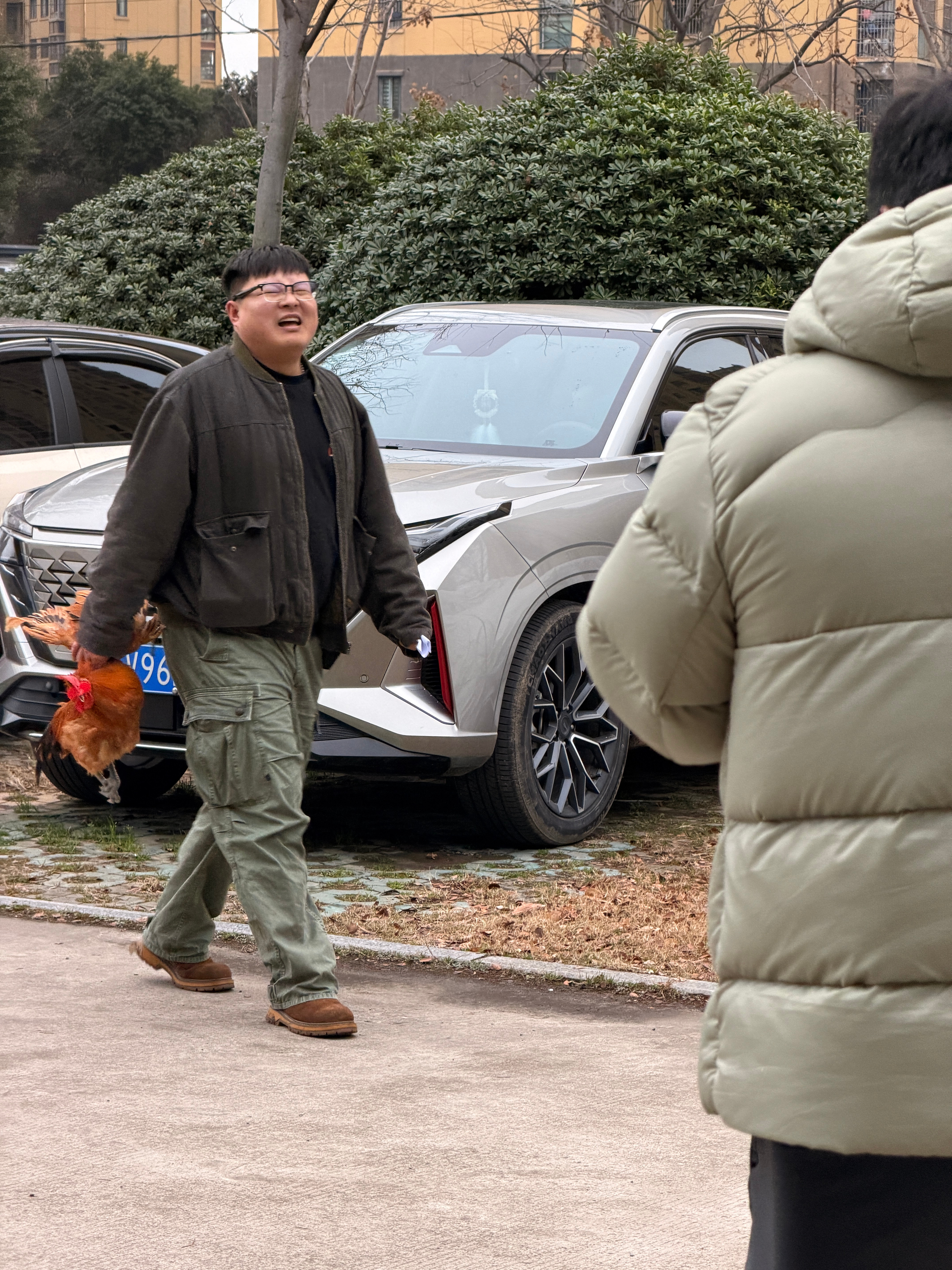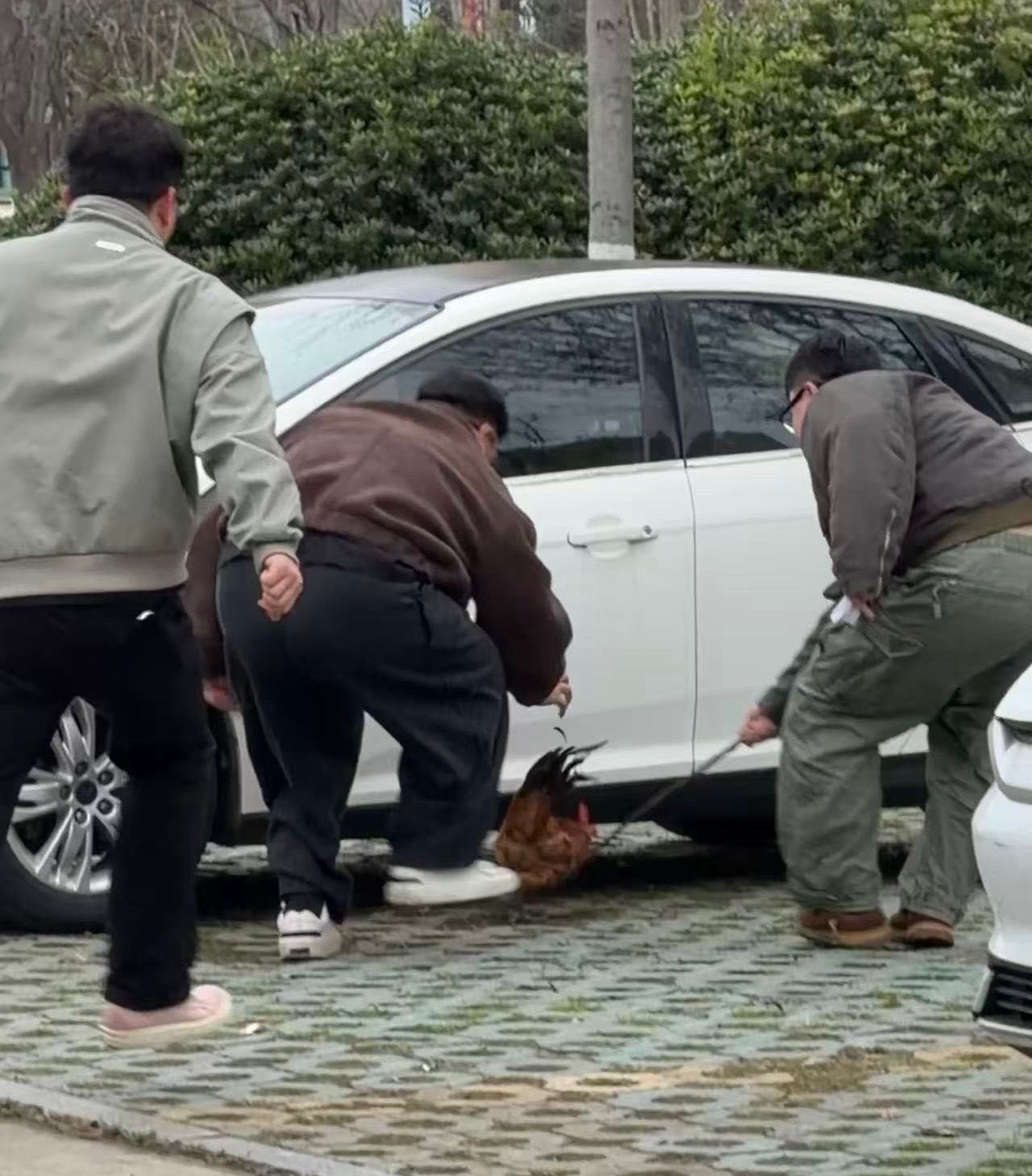 刚才我在拍摄【把鸡放后备箱挂着会不会扣分?】我和警察👮🏻♀️正在拍摄,然后鸡飞了我们这边拍摄,我的朋友还有同事帮我抓鸡🐔太有戏了!!! 合肥·肥西