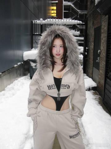 momo好辣momo雪地露腰造型辣死我了,斯哈斯哈!!!
