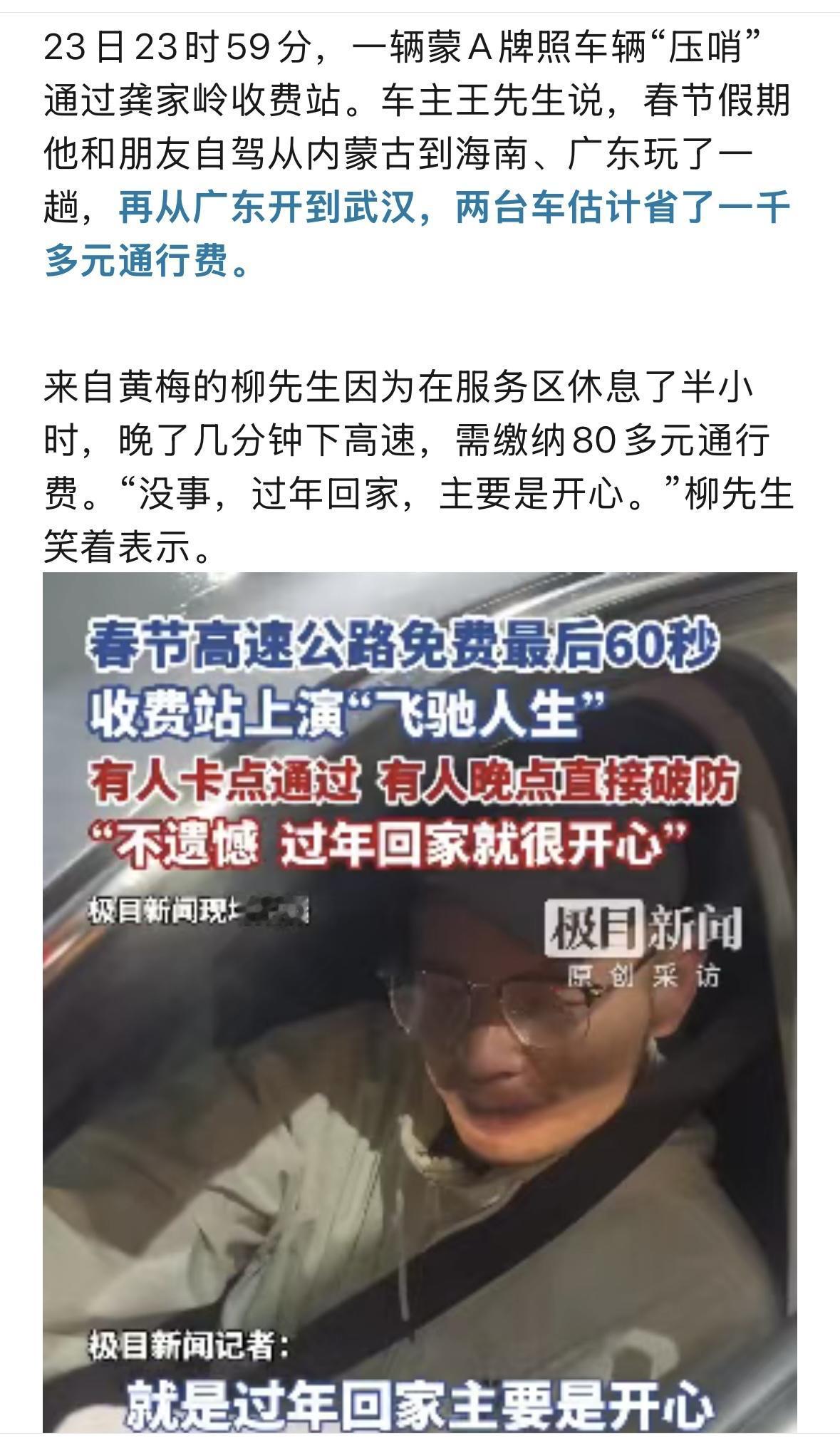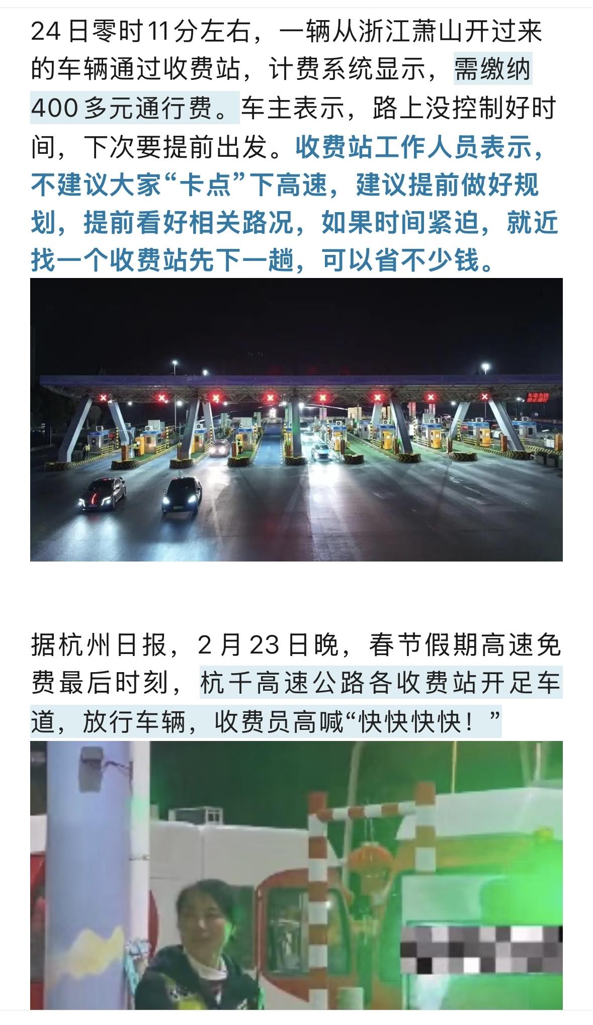 感谢收费员,都是好心人,不过这个政策,确实有点折腾人,不太厚道,应该改了!政策要稳定顺畅,不能你出政策,就要别人琢磨对策。好像别人太鸡贼一样,不过,快到时间节点之前,应该及早下高速,然后再上来,可以按最短距离收费,我也只能不厚道地出这么个馊主意。不要因小失大。