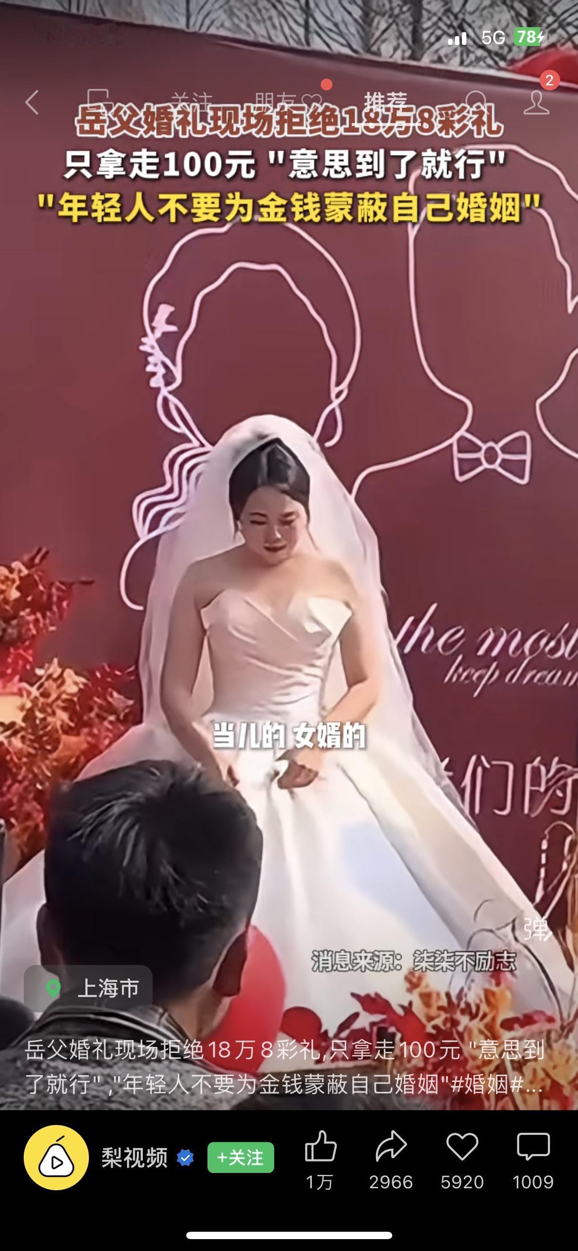 我直接被这位岳父暖到了。婚礼现场,女婿递上18万8的彩礼,岳父接过红包后,只从中
