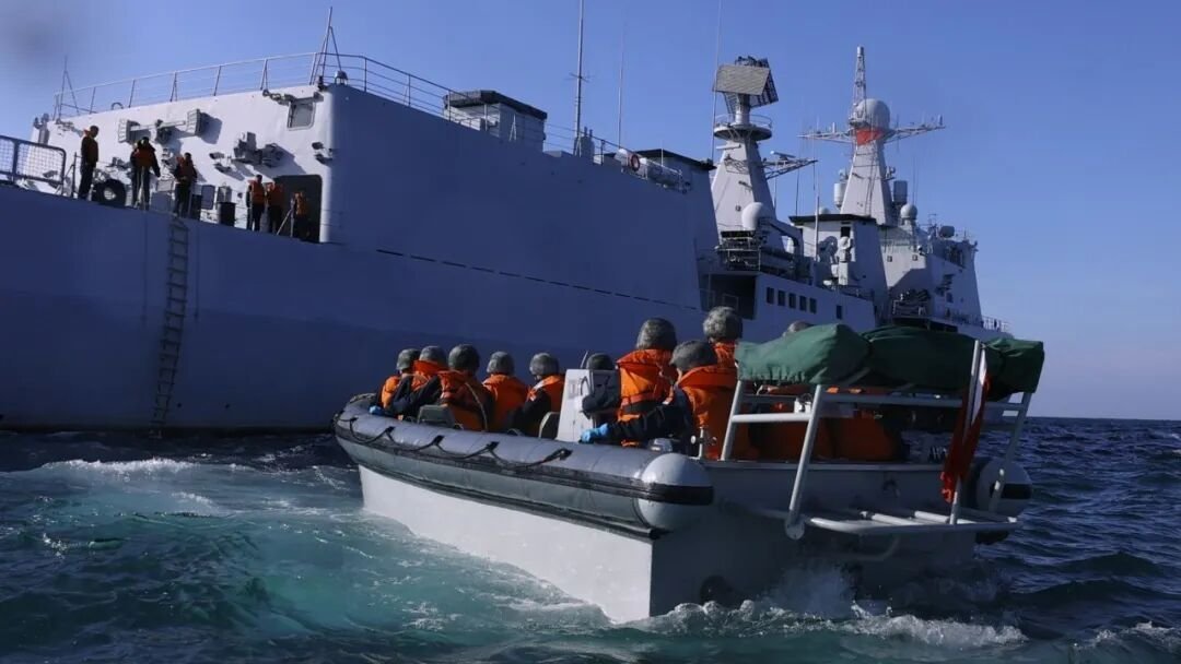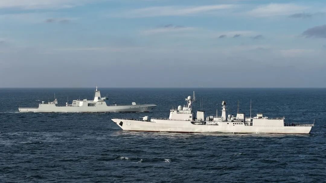 055万吨大驱和051C驱逐舰同框,你们猜051C驱逐舰上的官兵心里在想什么?
