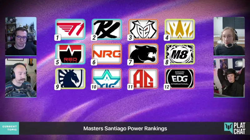 外网瓦播客PlatChat给圣地亚哥大师赛战队评级!T1第一,PRX第二,G2第三,而三支CN赛区战队排名倒三。