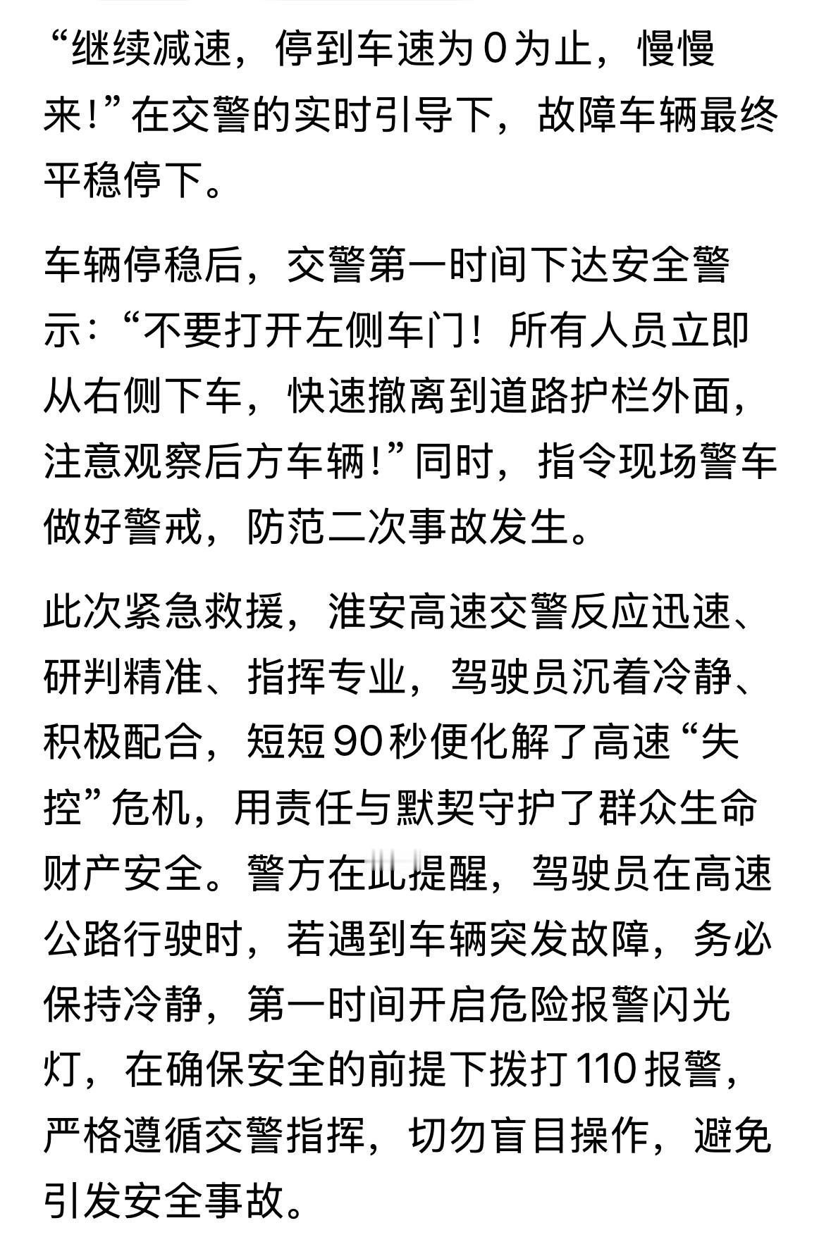 这个高速车辆失控紧急处理过程,必须转告大家,为交警点赞!记住,出现任何情况,必须