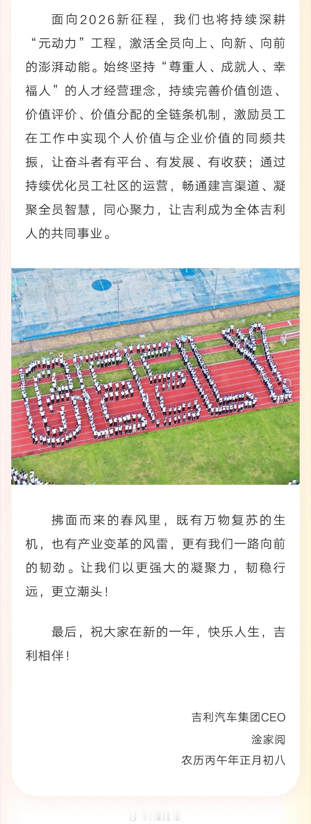 农历丙午马年开工首日,吉利汽车集团CEO淦家阅通过新春贺词,向外界同步了集团智能