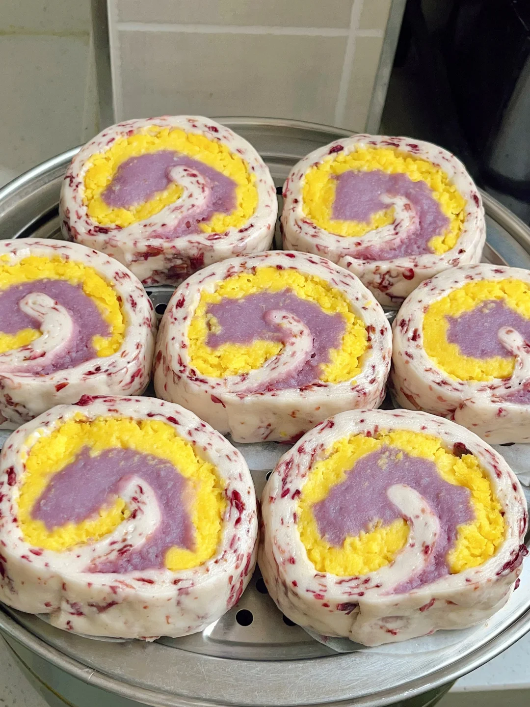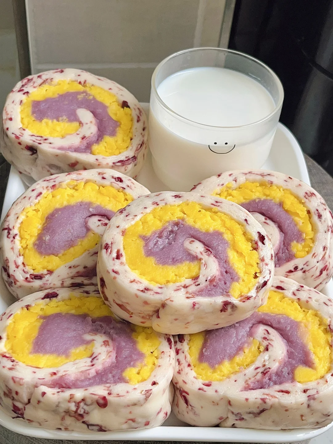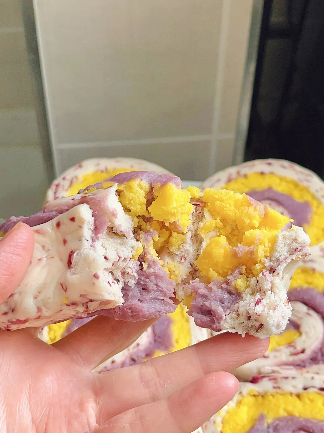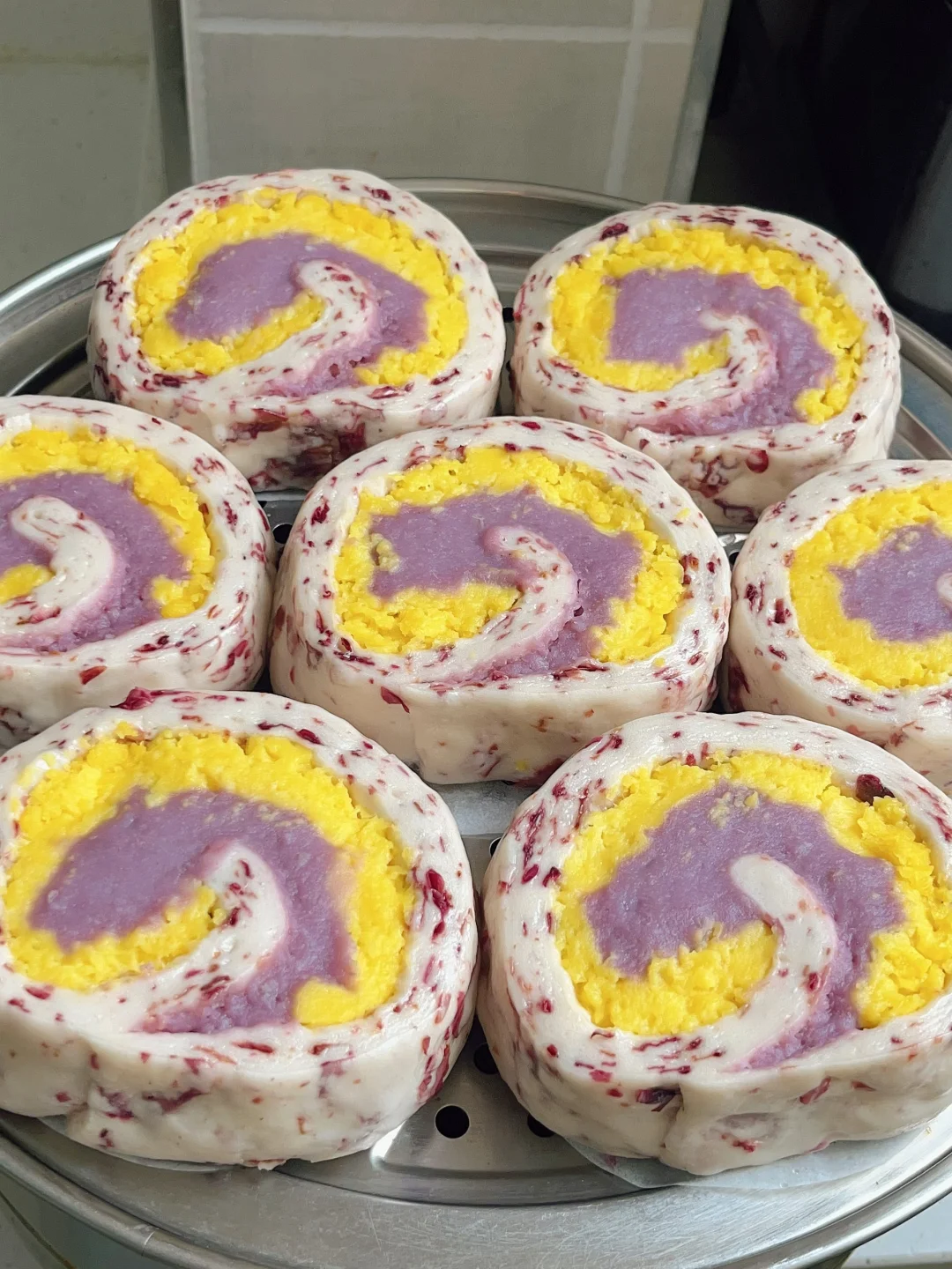一定要试试这个玫瑰奶黄芋泥馒头卷,真的超级无敌好吃,软软糯糯奶香十足