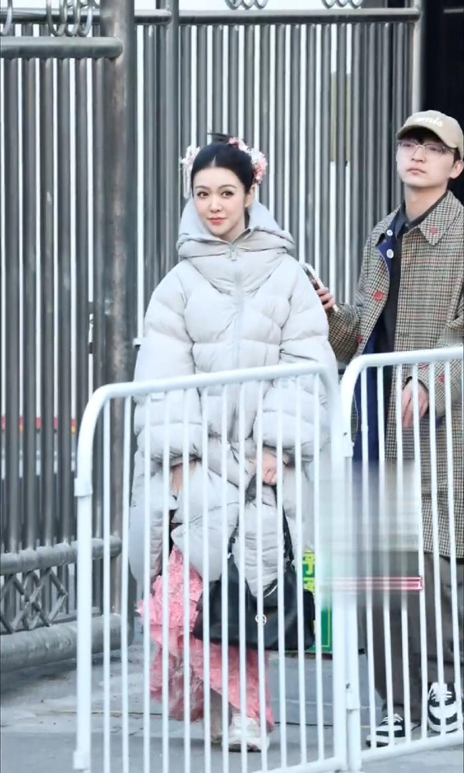 在粉丝的镜头下,45岁的薛凯琪,穿着羽绒服,平底运动鞋,提溜着裙子迈着小碎步,没有打光,也没有摆拍,45岁这状态简直就是奇迹了吧,白皙的皮肤,紧致的下颌线,从头到尾,一点槽点也没有,你在大街上看到这样一位“美少女”,怎么也不能相信她45岁了吧!