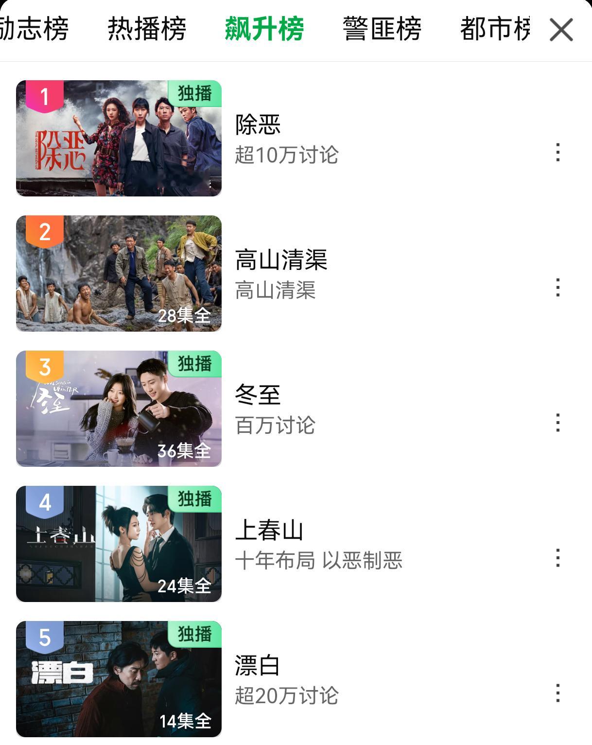 《岁月有情时》开播第五天无固屏春节后复工第一天,我老老实实在办公室干了一天活儿,还没下班,刚才去看了一眼爱奇艺,赫然发现《冬至》在飙升榜第三,《罚罪2》又跑到热播榜第7了