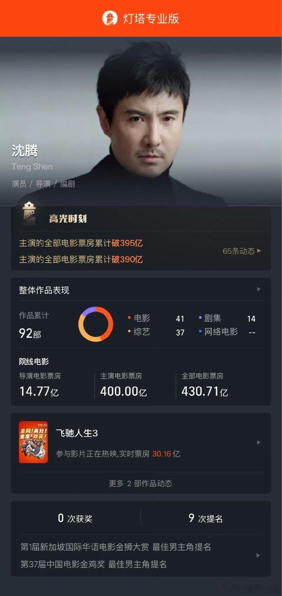 恭喜沈腾!主演票房正式突破400亿,华语影史首位,每个数字都是观众用票房投出的信任!沈腾实至名归,用作品说话!《飞驰人生3》票房也破30亿了,坐稳2026春节档票房冠军🏆