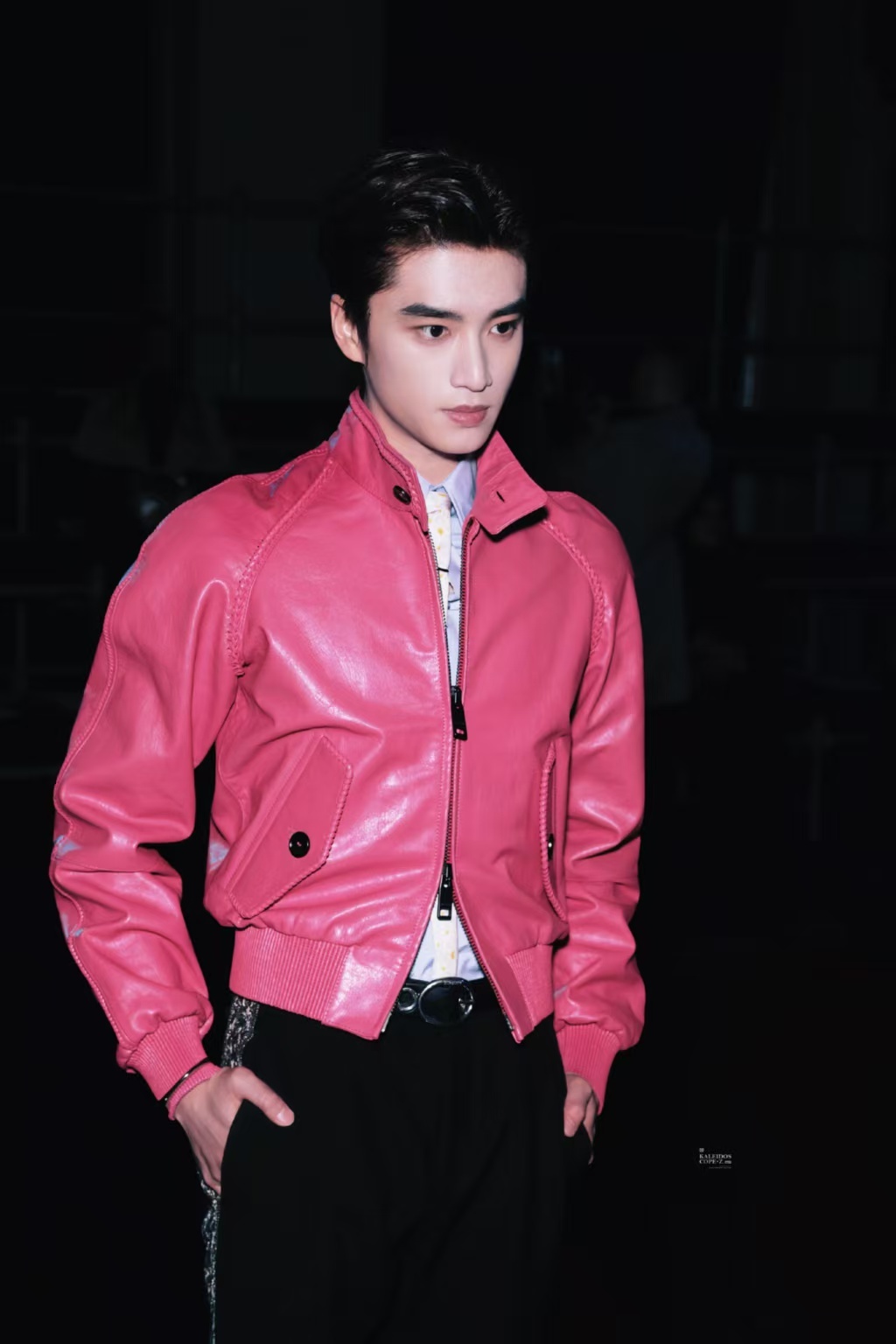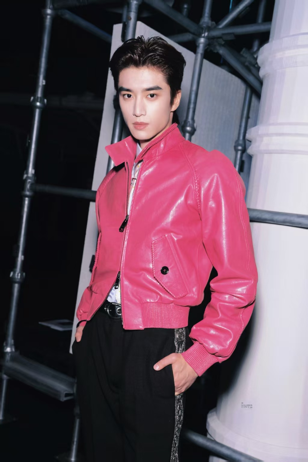 伦敦时装周救命!张康乐粉皮衣造型太绝了!伦敦时装周Burberry秀场,浓颜系帅哥轻松驾驭高饱和粉色,帅气中带点小叛逆,少年感满满,气质干净又高级,越看越喜欢!张康乐粉皮衣造型