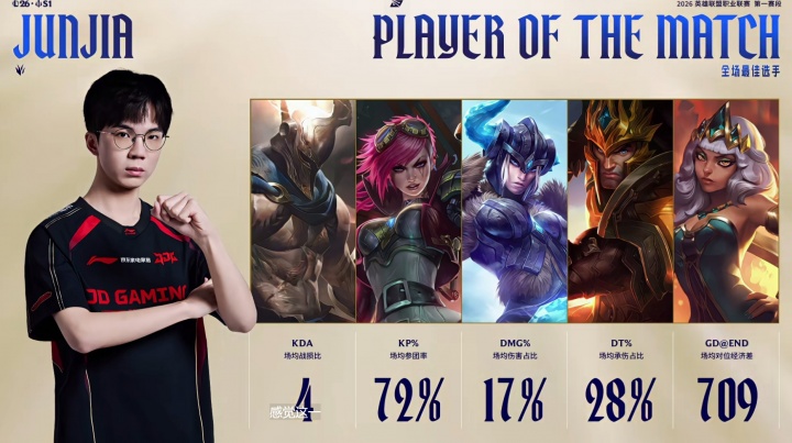 最后一把打爆奶油!Junjia斩获本场比赛POM 守护首发位置