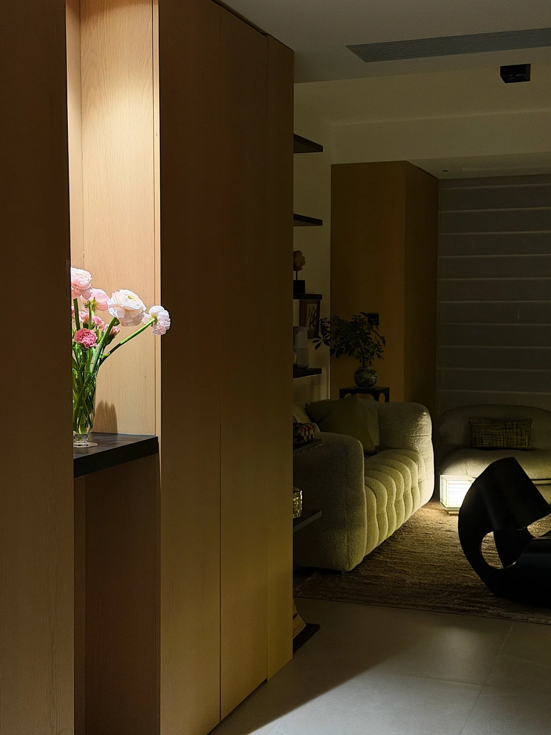 住过很多酒店,“耳儒墨染”中,对于酒店氛围感的营造也逐渐有了概念。酒店氛围感的营造自然也运用到了我家的塑造中,入夜后的光影、软装都是烘托氛围的点睛之笔。