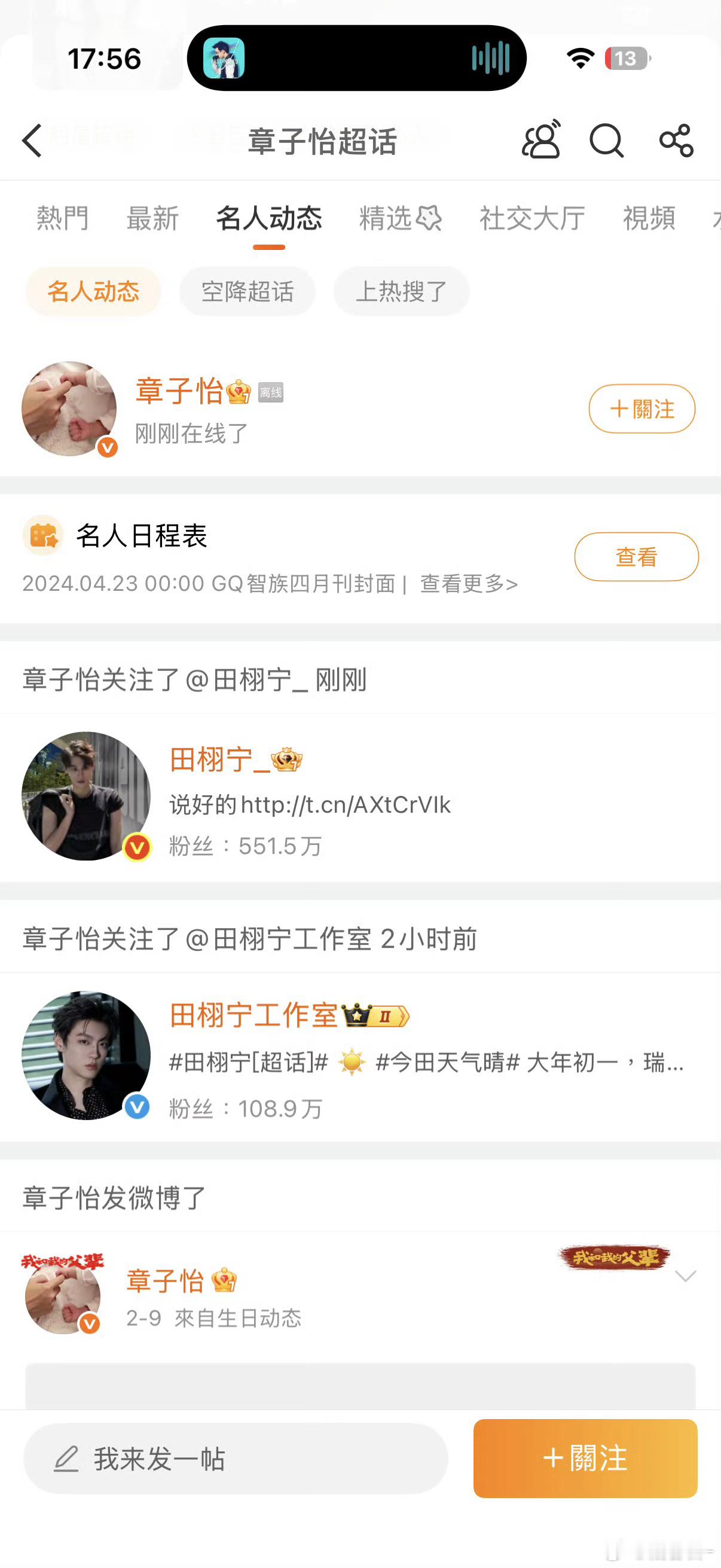 章子怡关注田栩宁工作室,不止如此,还关注了田栩宁本人,虽然不知道是什么合作,但是