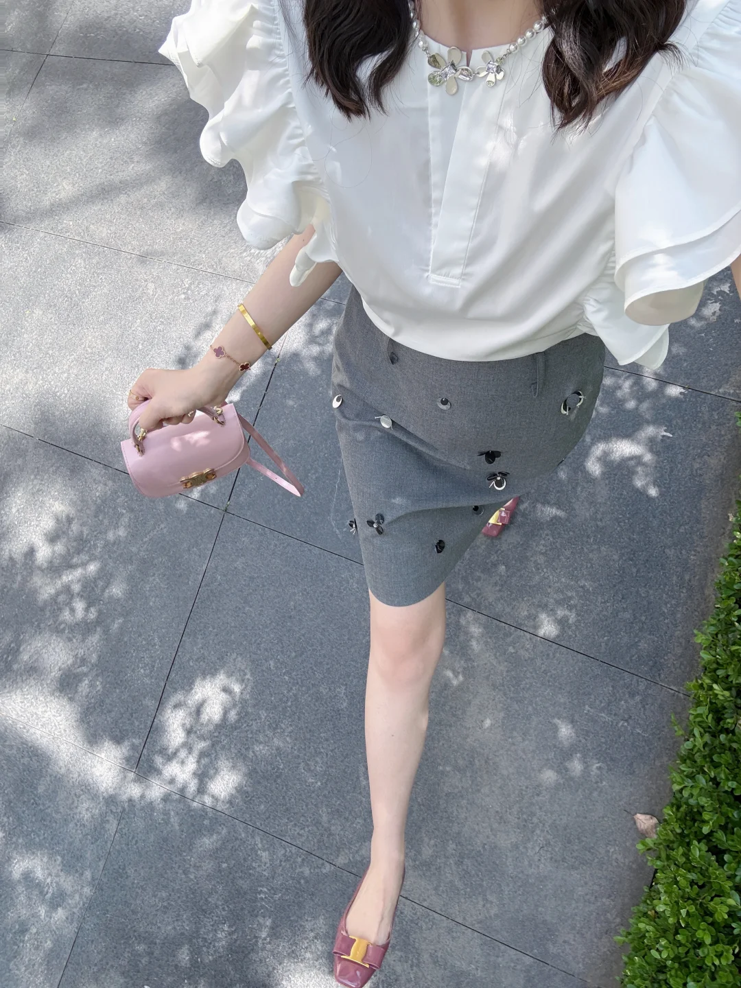 高铁上的“奶白松弛甜妹”,白色短袖+灰裙+白丝+白鞋,把元气和舒服焊在身上。穿搭