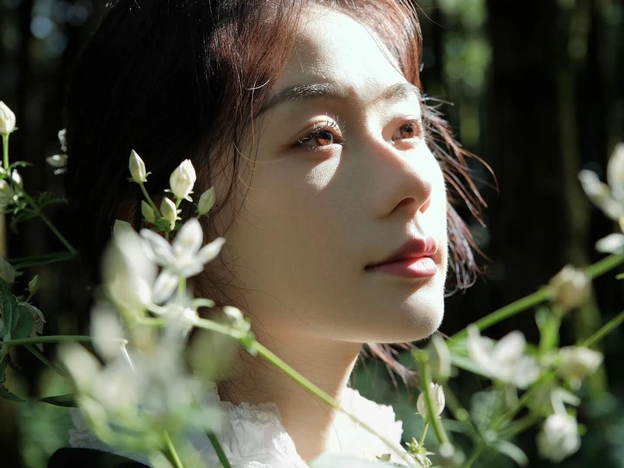 完美摄影作品赏析/森林公园摄影作品/森林中的少女,手捧一杯绿植,静谧而美好。光影