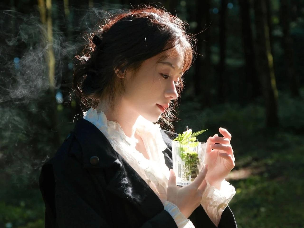 完美摄影作品赏析/森林公园摄影作品/森林中的少女,手捧一杯绿植,静谧而美好。光影精灵公园气质写真 森林风景照 森林逆光写真 公园氛围感写真 静谧绿植写真 公园知性写真 森林野趣写真