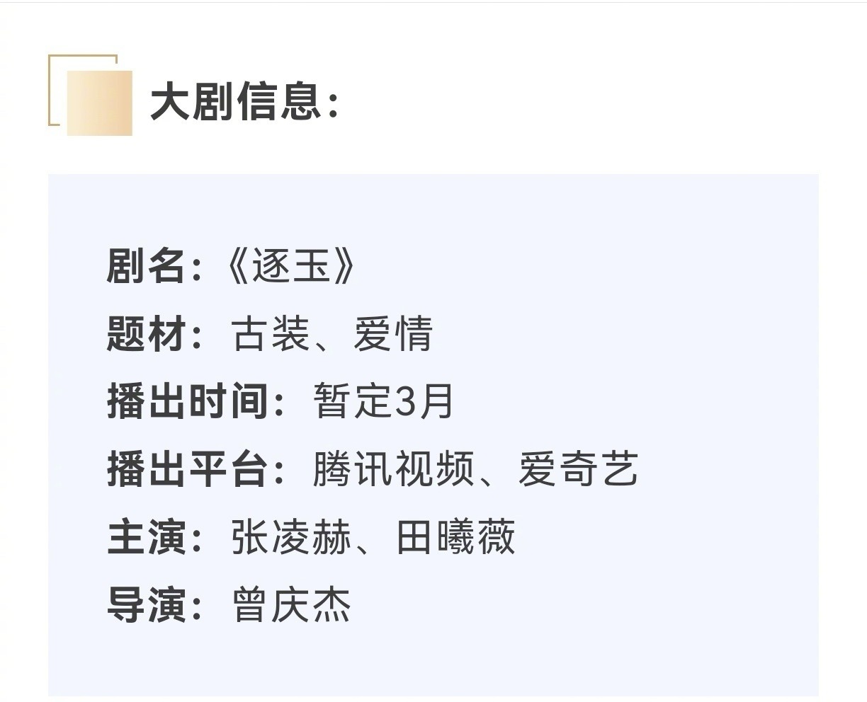 张凌赫、田曦薇逐玉最新招商看点 暂定3月播