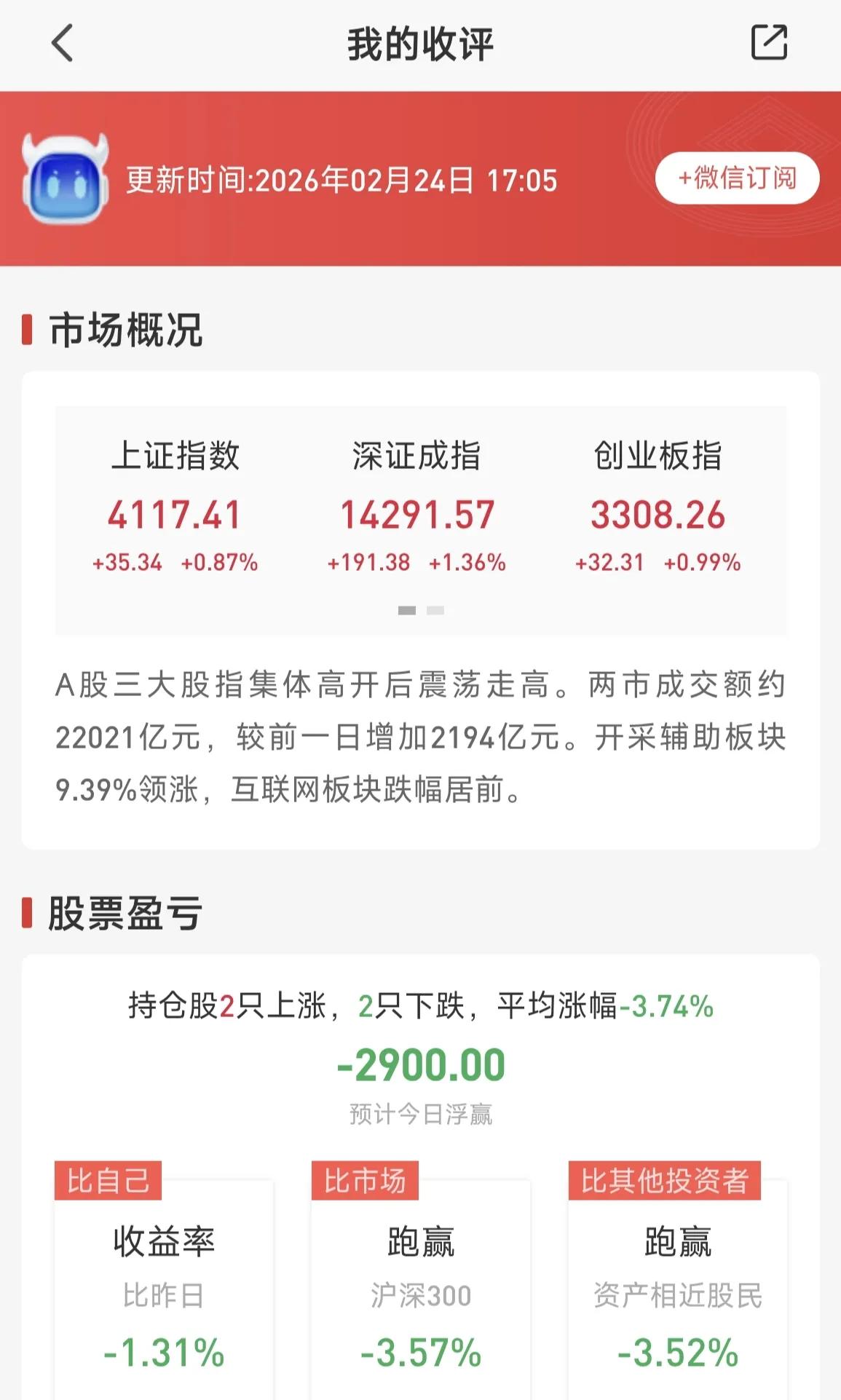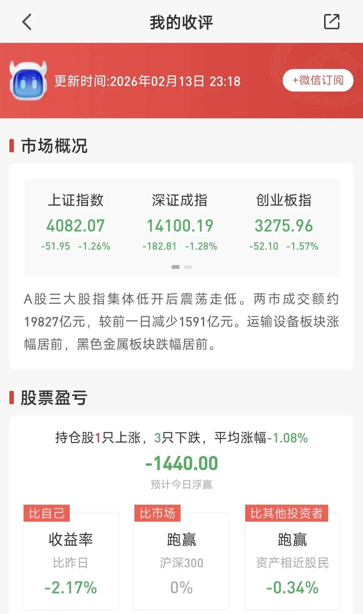 今日的开门红行情还是要谨慎,毕竟小心使得万年船。二月以来的行情欠佳,特别是最后一天(2月13日),本以为行情会上涨,起码不会大幅下跌,可主力偏偏反着来,如此行事实在没格局,让人都没了过年的兴致。今天开盘便遭迎头痛击,持有的Ai、机器人都偃旗息鼓,油气板块却集体爆拉,可能与近期美伊关系紧张,助推油价冲高有关。 但咱的日子还得继续,哈哈,坚信大A继续轮动,天天开盲盒,新鲜又刺激!