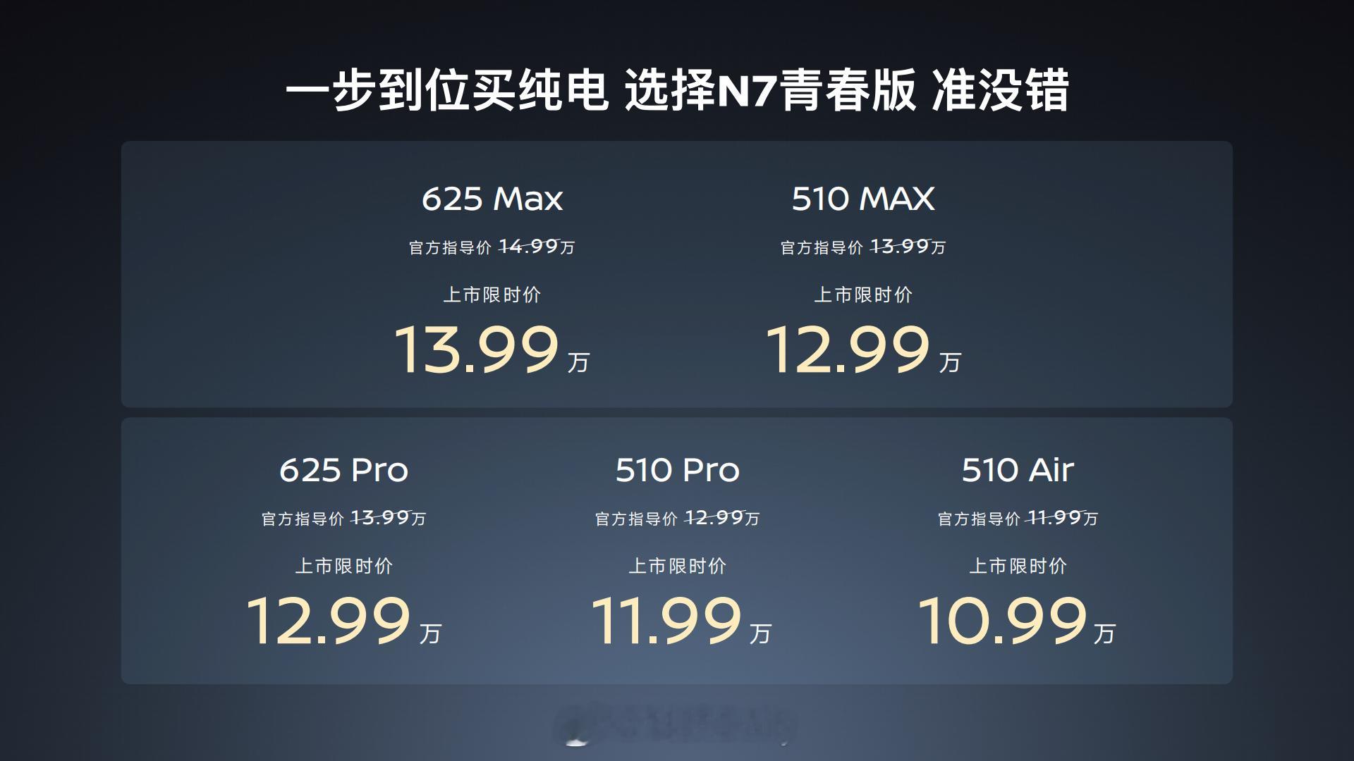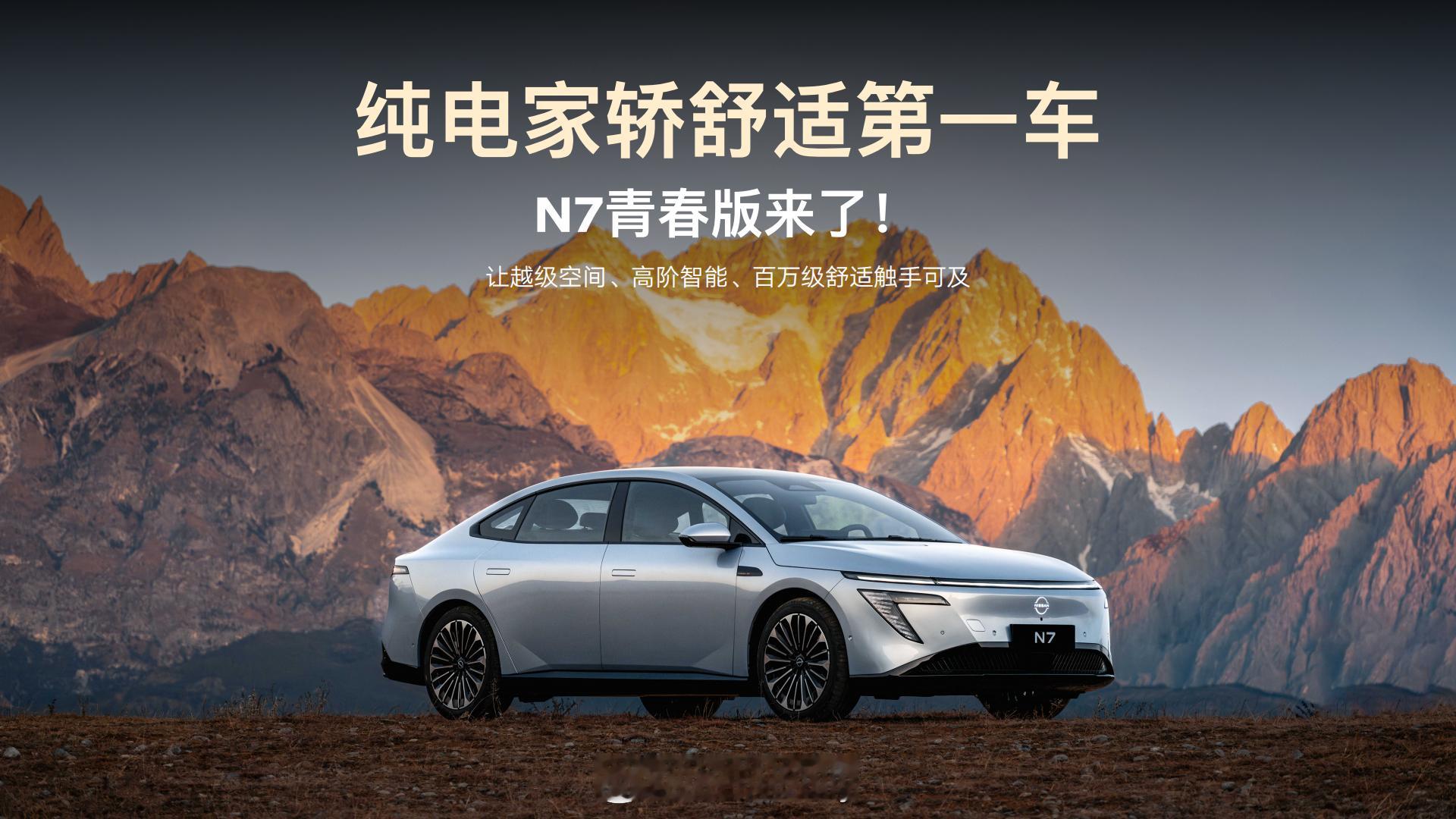 对啦很受大家欢迎的N7也带来了「N7青春版」,让好车全面普及,设计方面极简至美好看更高级,2915mm的超长轴距,83%高得房率,我在去年国庆就实打实的感受到了这款车的大,而作为青春版,N7青春版也相当可靠,超高强度笼式车身,守护得住安全,更有安全靠谱的电池。