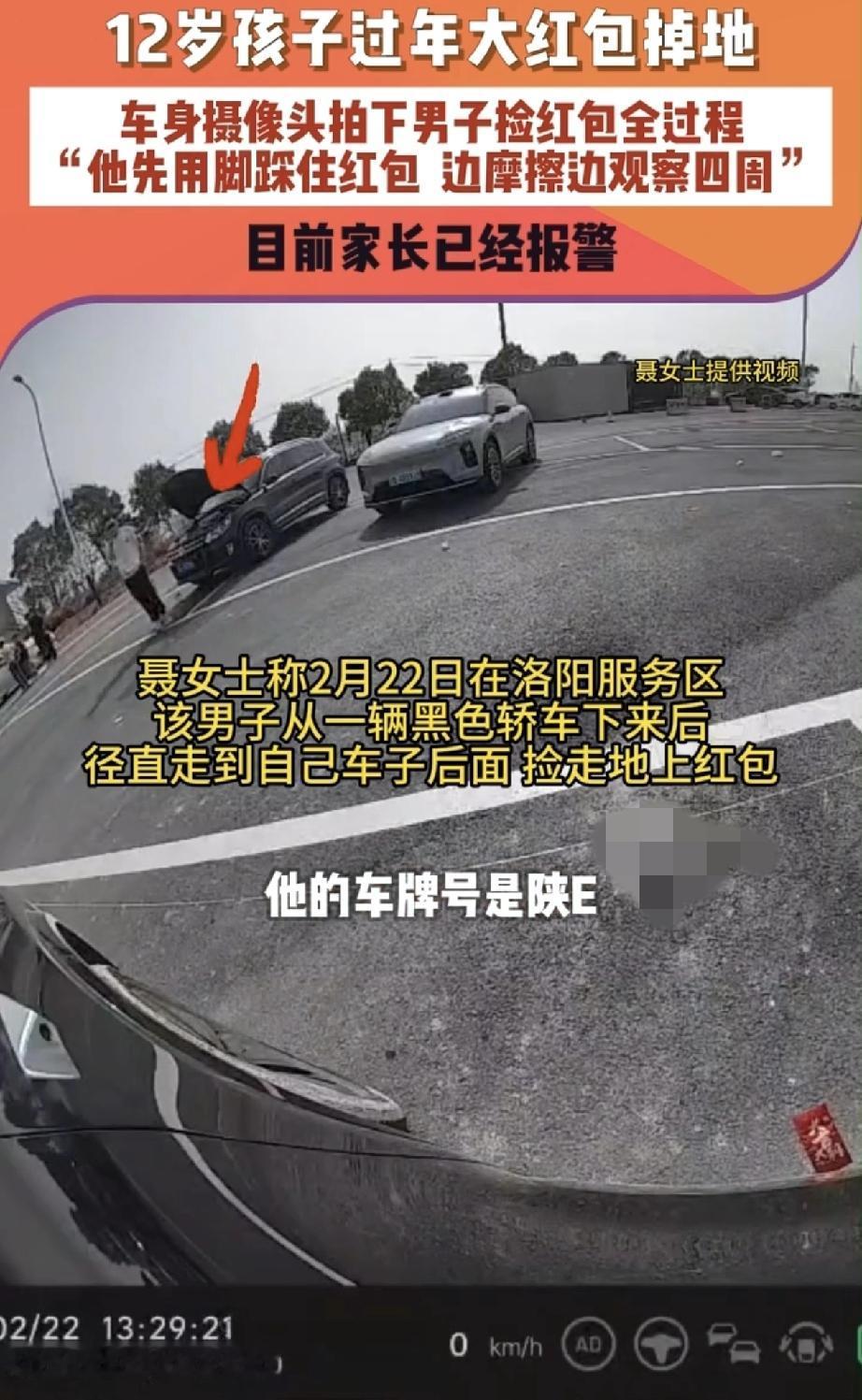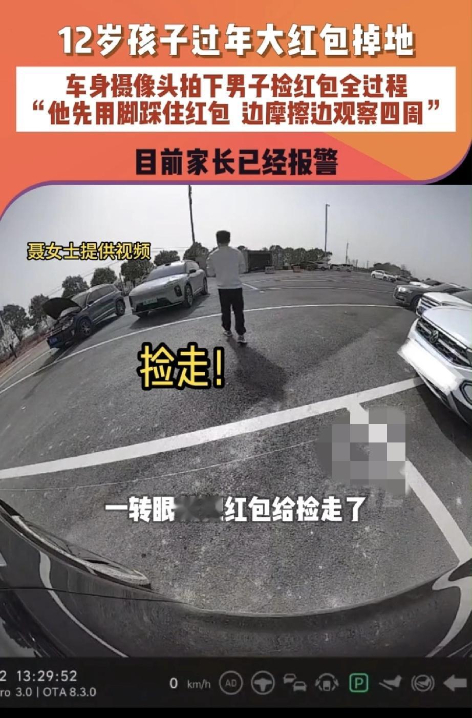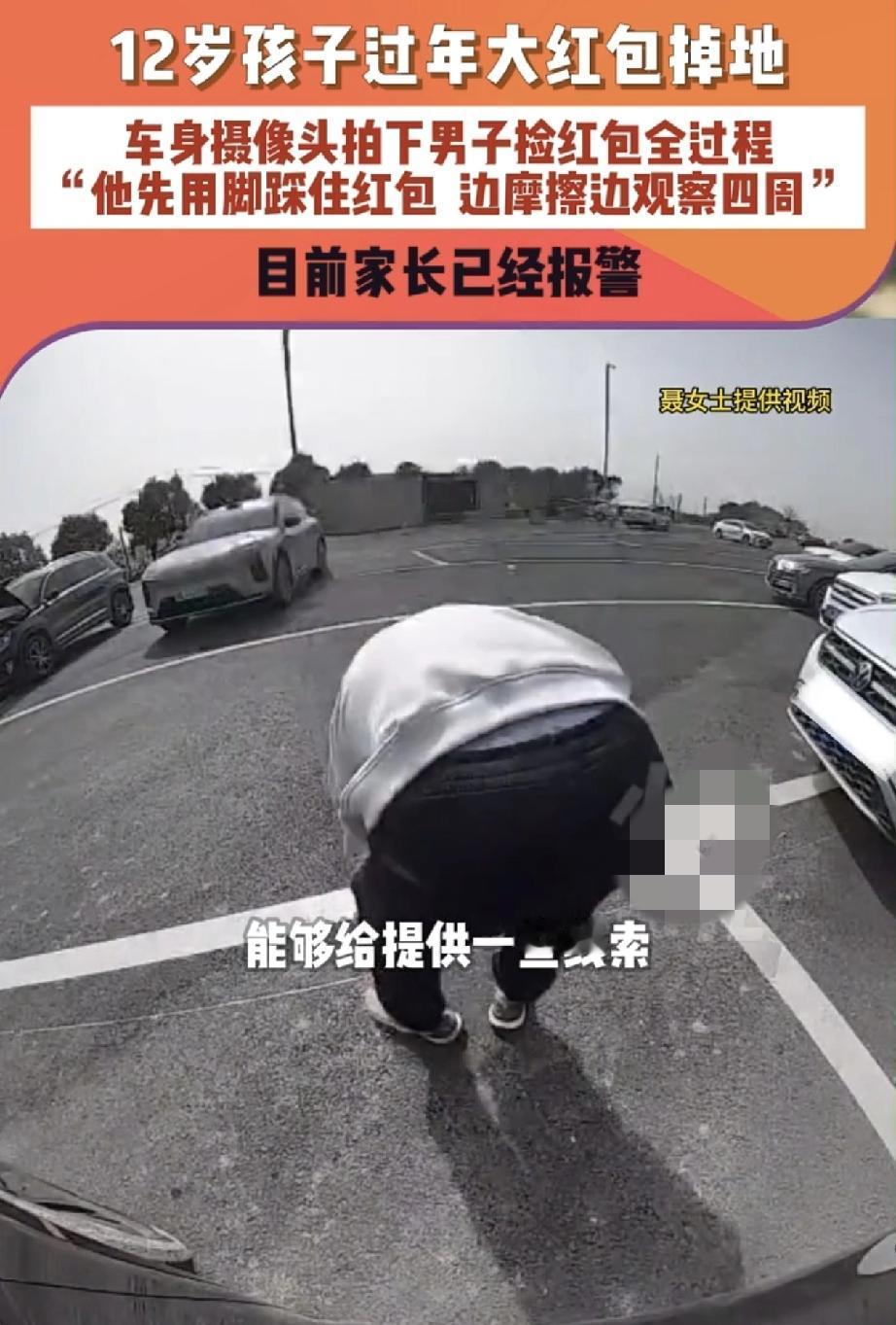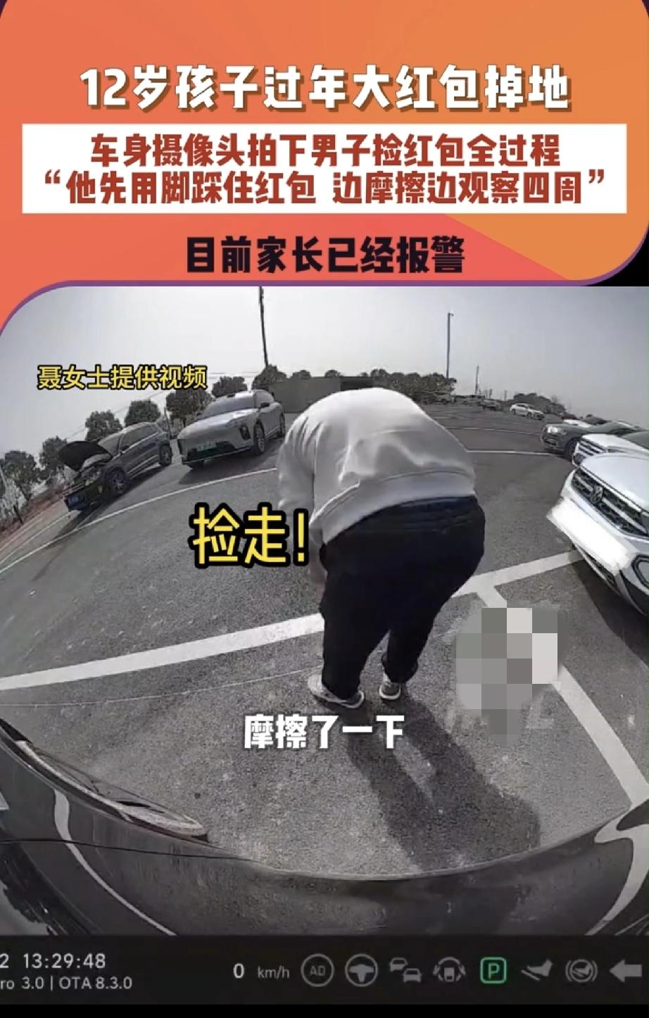 河南郑州,一位12岁孩子过年的1255元大红包掉了,后孩子妈妈通过车身监控看到,红包正好掉在了她家车旁边,且被一名男子捡走了红包。可见,男子发现红包时,先是用脚踩住红包,四下观察无人后便将红包捡走了。好巧不巧的是,这车身监控不但拍下了男子捡红包的全过程,还拍下来男子停在不远处的车以及陕西车牌号。于是孩子妈妈报了警,并在网上喊话,希望陕西的朋友看到之后能通供线索,让该男子归还孩子的红包。 而此事也是引起了网友们的一片热议。有网友就表示:这妈妈的做法不恰当,毕竟人家是捡的东西,又不是偷的,你想要回来或许应该换一种态度。既然报了警,警方很快就能找到对方信息,私底下联系一下就能解决的问题,也不至于把事发到网上找人吧。 也有网友表示:这属于遗失物,不还的话,可通过民事诉讼追回。如果金额大于一万,事主可以解释原本是放在地上图个吉利,稍后要取走,可以认定为遗忘物,拾得遗忘物不归还,构成刑法侵占罪。男子还是赶紧归还,不然真摊上事了后悔莫及。 那么捡到别人的财物不归还会怎么样?有律师网友就科普到,这种捡到钱不归可能涉及违法。 民法典第314条,拾得遗失物应返还权利人,或送交公安等部门。民法典第985条,倘若拒不返还属不当得利,失主可起诉要求返还财物及孳息,还可主张保管不善的赔偿。 刑事层面,根据刑法第270条,以非法占有为目的,将他人遗忘物非法占为己有,数额较大且拒不交出,构成侵占罪。 看来捡到别人的财物,最好的办法还是立刻移交公安部门为好,不要因为贪图一点小便宜,而因小失大了! 对此大家怎么看?