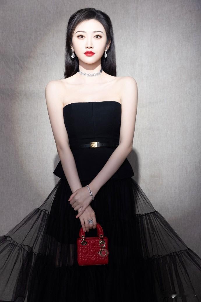 景甜穿黑色抹胸纱裙配红色手提包的造型,真的美出天际!这条黑色纱裙版型大气,利落线条把身形修饰得恰到好处,端庄又柔美。网纱材质轻盈灵动,少了正式感,多了温柔感。 珠宝配饰简约精致,提升了整体格调。而那红色小手包堪称点睛之笔,更添了几分俏皮灵动。景甜
