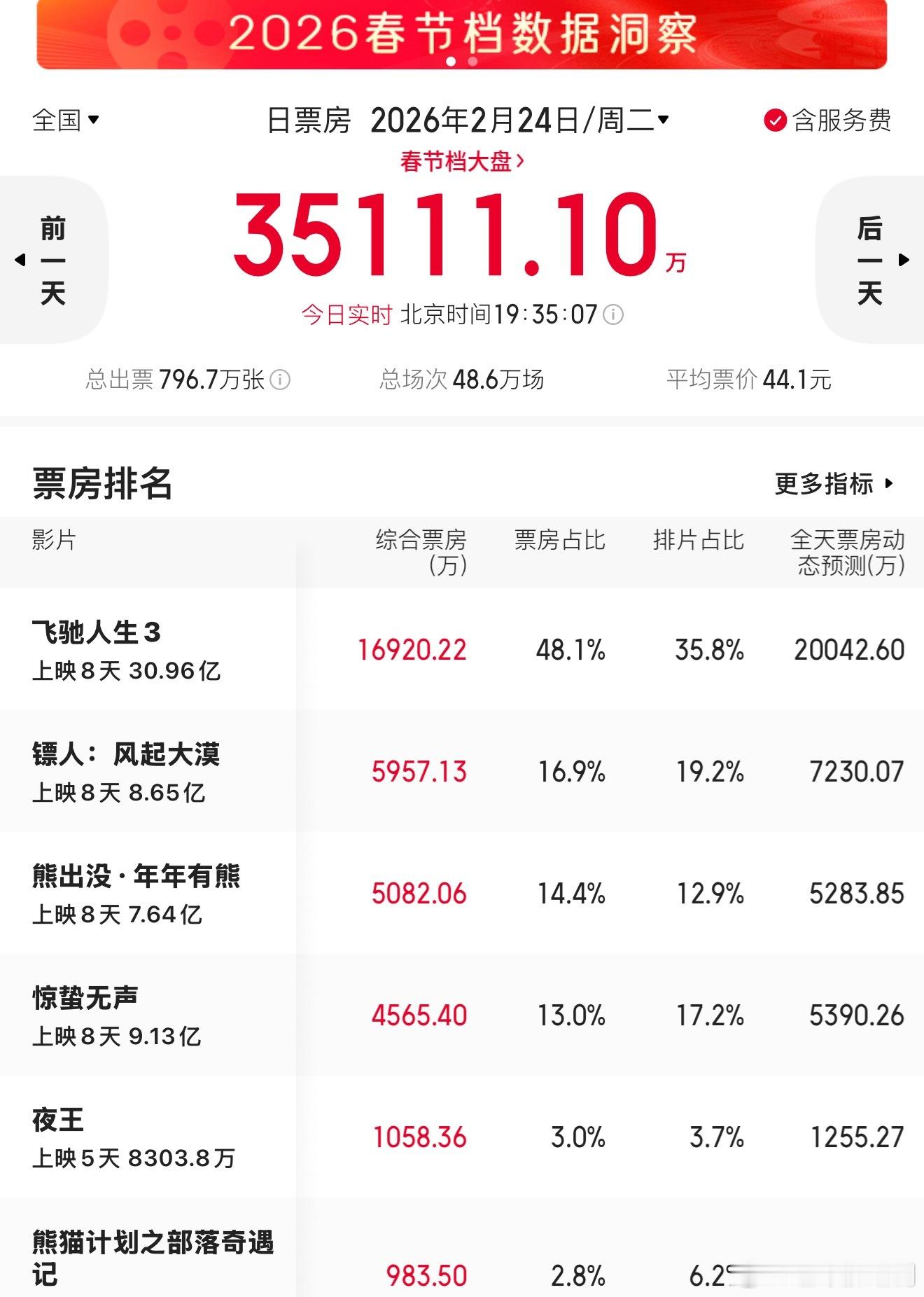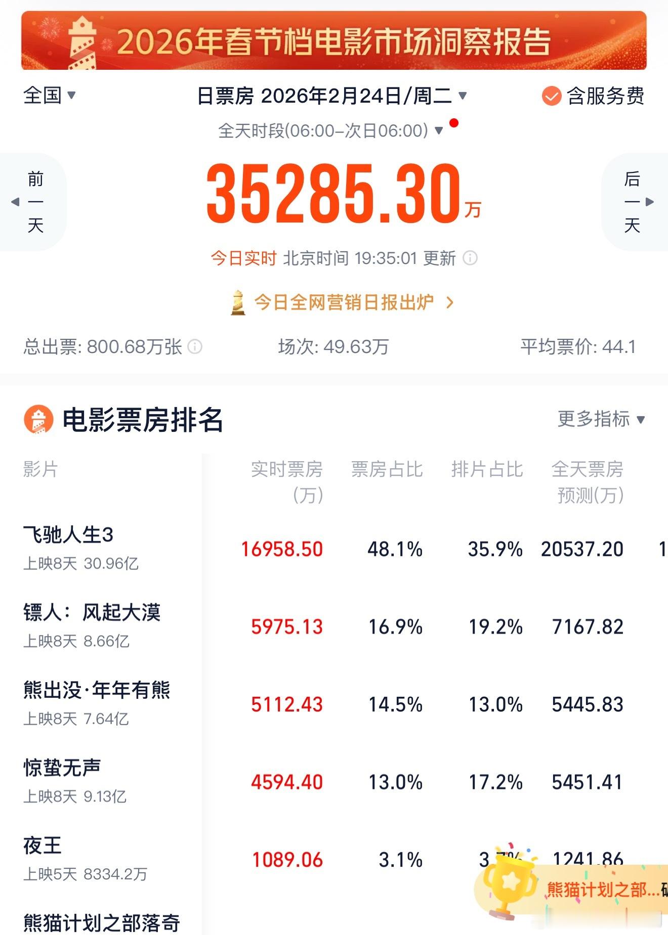 灯塔猫眼实时票房《镖人》再次站稳第二,口碑方面烂番茄评分又叒提高了,从92%上涨