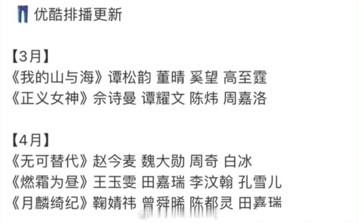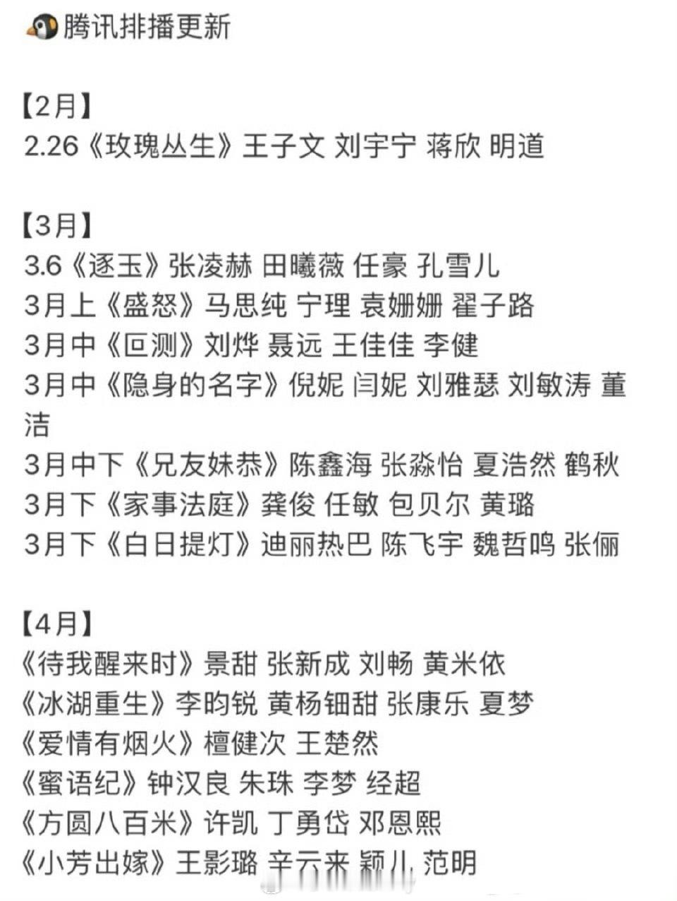 三大平台👖🥝🐧三四月剧排播准备看哪个