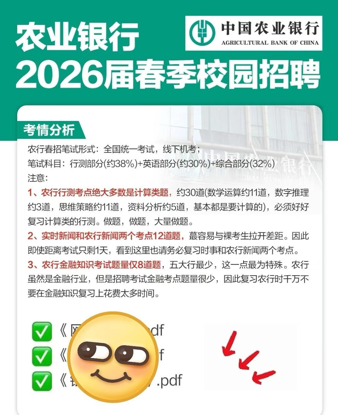 农行26春招要来了!3月上旬启动,招4500人,25-26届应届生别错过。网申3月12到28日,笔试4月19日。岗位有管培生、信息技术等,部分地区不要求四六级,想去的抓紧准备啦~