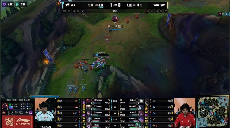 第一局:太勇了!Tarzan皇子火锅暴扣WEShanks发条拉三人AL赢首局