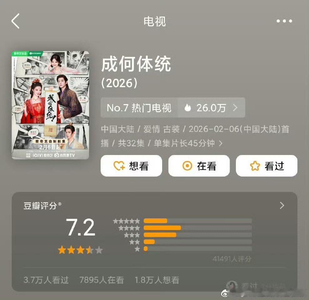 王楚然 丞磊《成何体统》开分7.2分,4.2w人打分 体感有没有偏高或偏低?