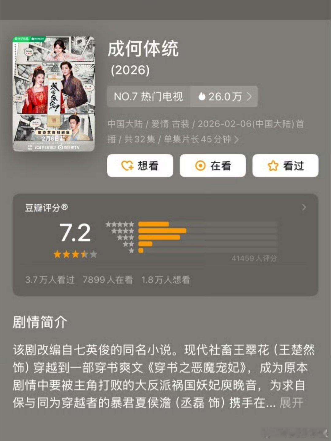 王楚然、丞磊《成何体统》豆瓣开分7.2!完结后还加广目前总广告时长1698秒🐮两人又多了一部拿得出手的作品