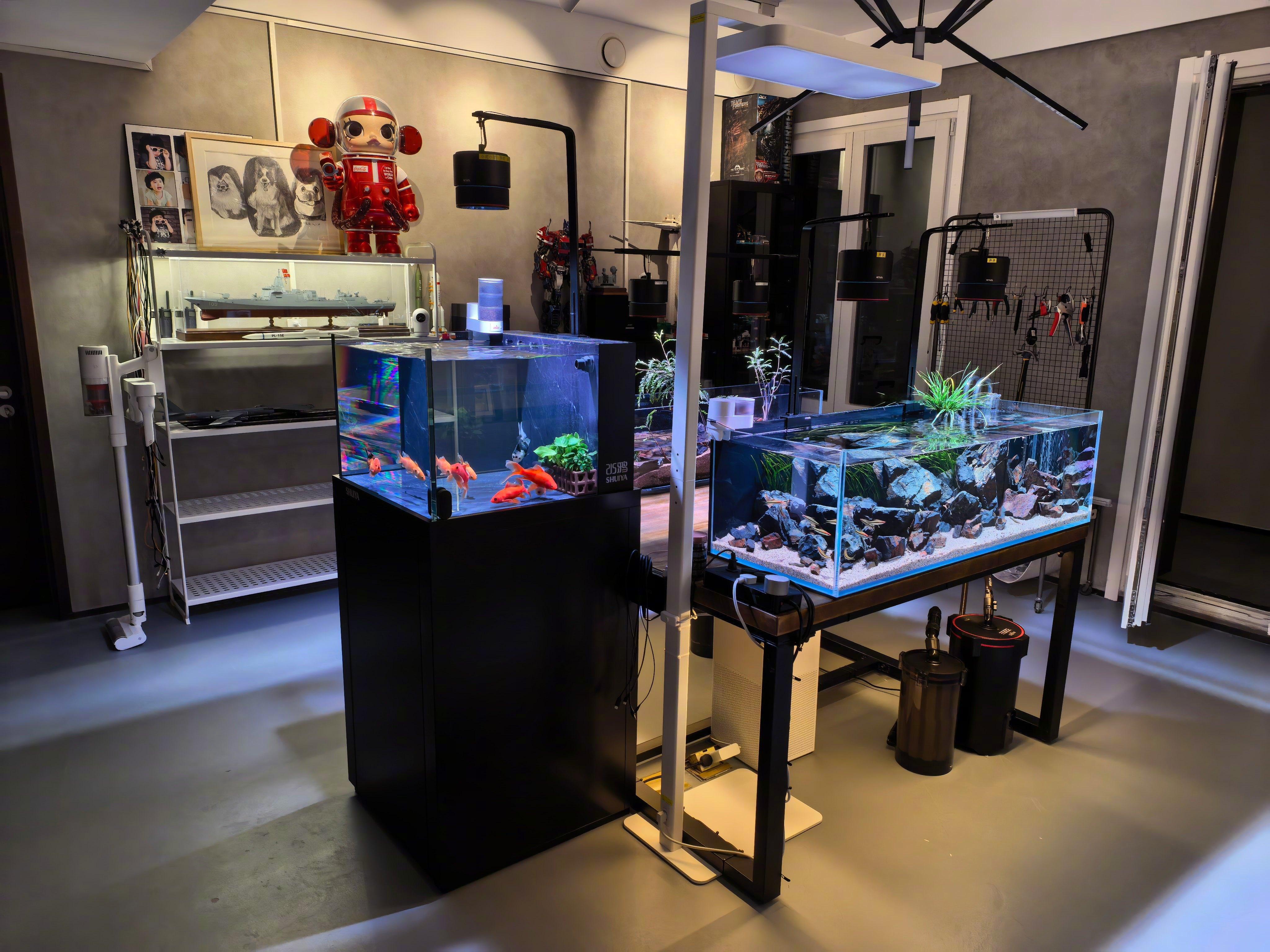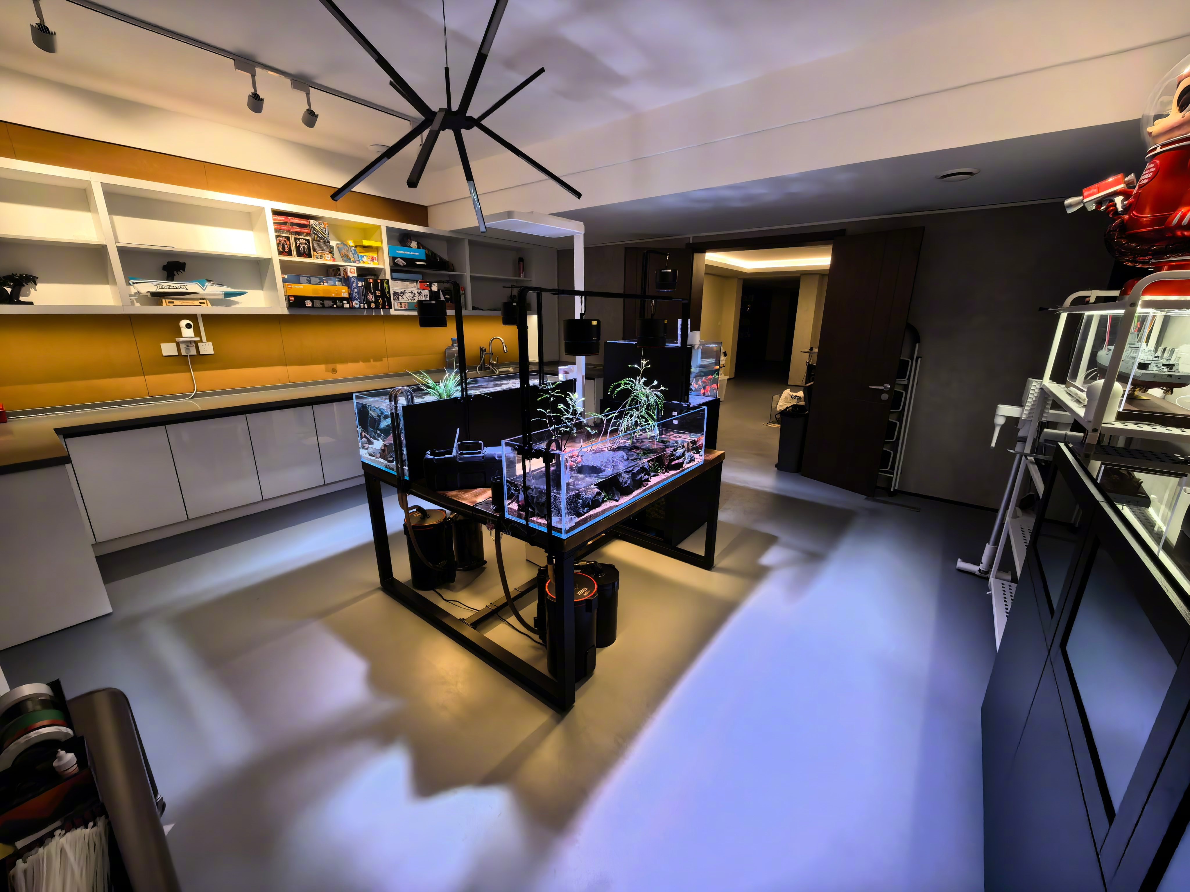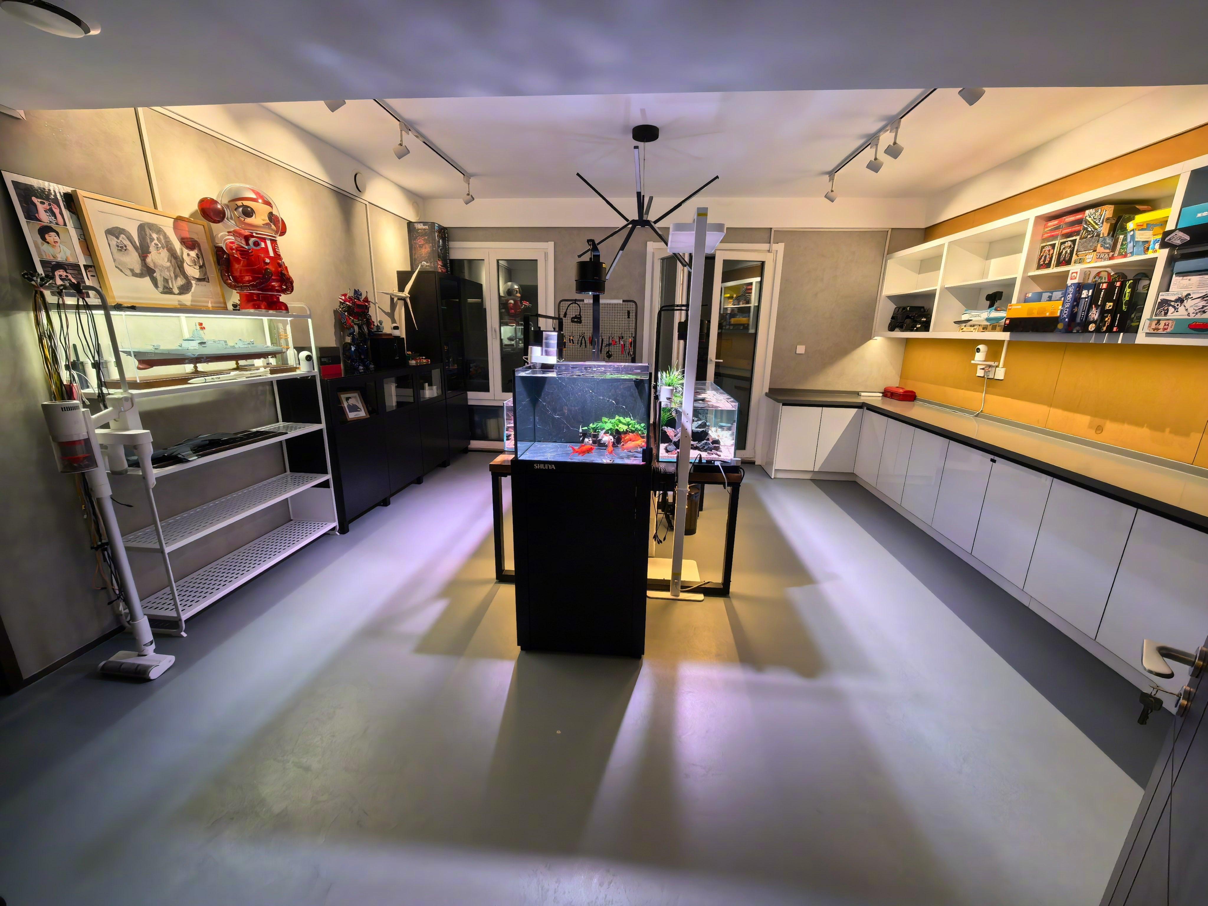 春节放假这几天,给我家地下室一个闲置的屋子改为了:养鱼和模型屋。