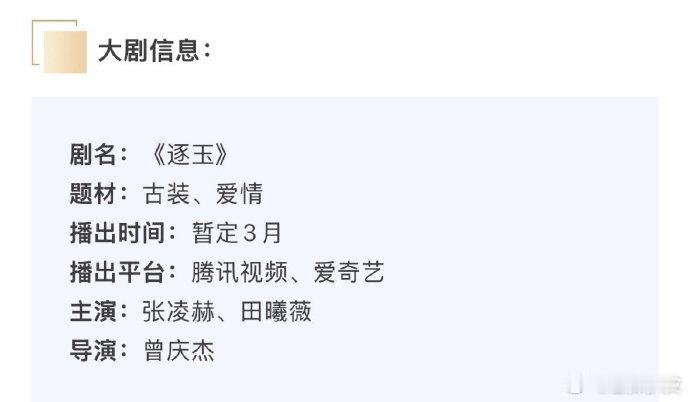 逐玉招商看点张凌赫田曦薇逐玉开始招商张凌赫、田曦薇《逐玉》开始招商,招商看点🈶预计三月六号开播,真是没谁了,除了好期待还是好期待
