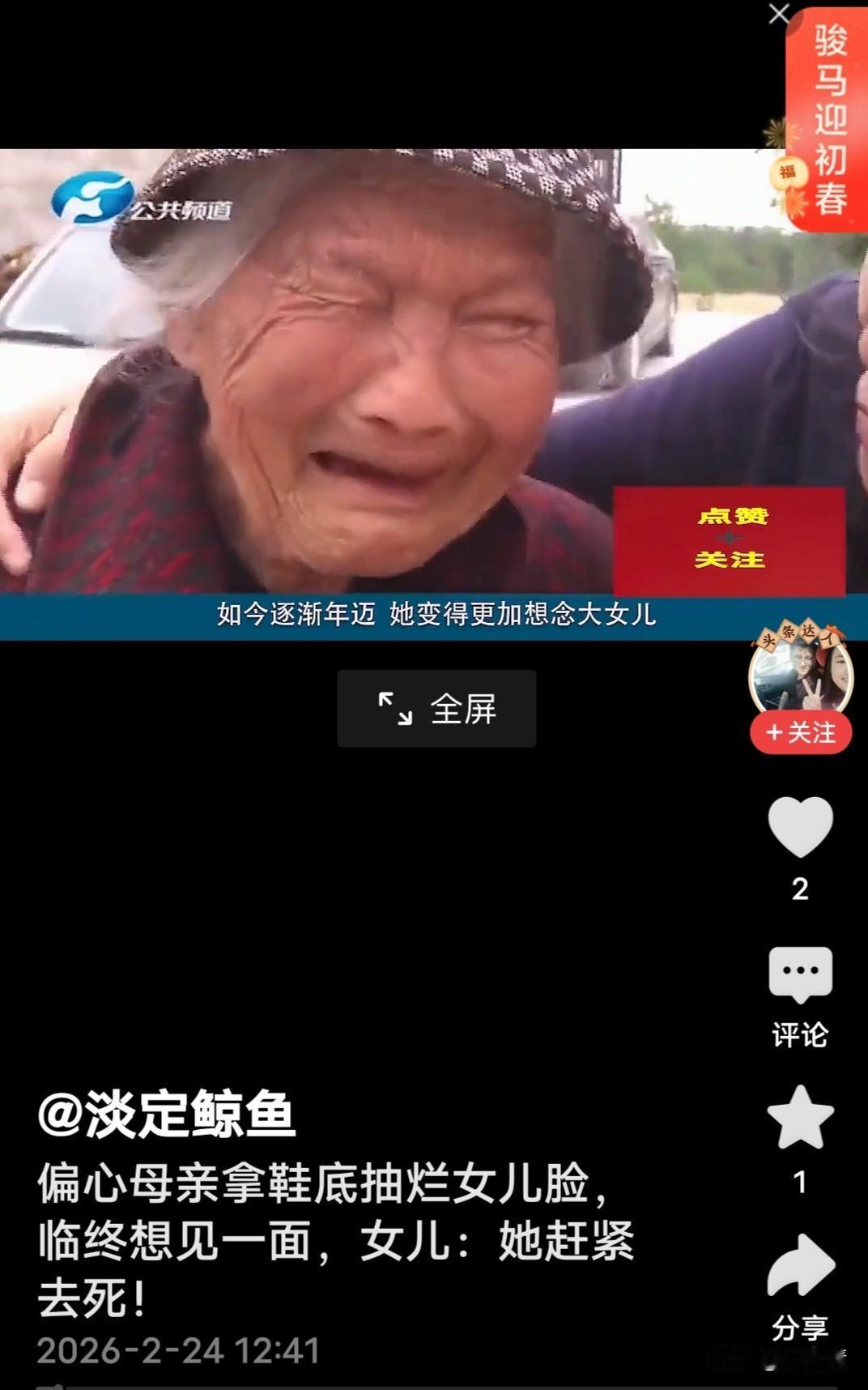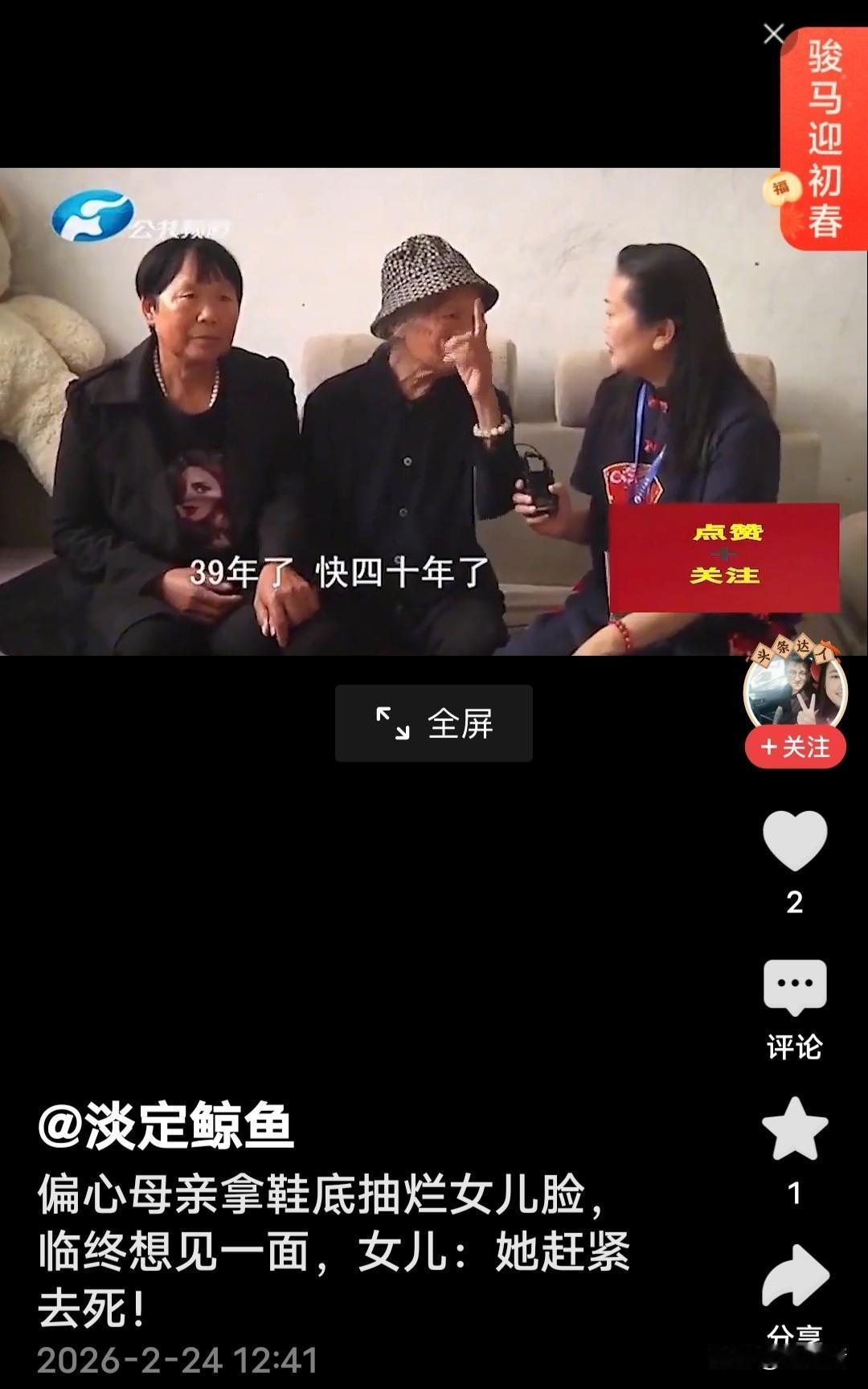 断绝39年的母女情能续上吗?因小时候母亲用鞋底打过女儿脸,她记恨母亲一辈子。母亲临终想见她一面。女儿,她赶紧去死! 耄耋之年的丁老太太已经90多岁了,提起大女儿就泪水涟涟。老太太说“她25岁结婚后,就忘了娘。”她想在临终之前见大女儿一面,却了心愿。所以,她和小女儿找来了调解员。 老太太与老伴生养两个女儿,她自己讲,我不满意她第一次的男朋友,不让她男朋友来家。后来,她自己做主又找了男友,25岁那年结婚,打那时候就没有来过家,她爹生病至死,她也没回来。 调解员找到几公里外的丁女士(老太太大女儿)家,说明来意,她抵触情绪强,关上门不见调解员。连同丁女士妹妹三番五次劝说,最后,勉强答应调解。 大女儿情绪激动,痛恨妹妹和母亲欺负她,说母亲偏心。坐在旁边的妹妹矢口否认,“我从来不会欺负姐姐,如果有、当场死在你面前。” 丁女士大倒苦水,小时候让她在家里长时间纺织棉花,天天熬夜,纺少了母亲就打她,用鞋底打脸,有次脸打出血了。 还有,她结婚后来娘家,母亲不让他(女婿)进门,说死也不让他来家里,带的东西都被扔出来了,我从此以后与家里一刀两断。 通过调解员的苦口婆心,老太太也认识到了自己的错误,向女儿道了歉。大女儿也不再坚持自己的观点,隔断近40年的母女情,终于续上了。 可惜,她们的恩怨纠葛释怀的太晚了!人生能有多少个39年?丁家留给人们的教训有哪些呢?母女代沟矛盾 母女情感矛盾 母女情感纠葛 母女情感碰撞 母女情纠纷 母亲打女儿